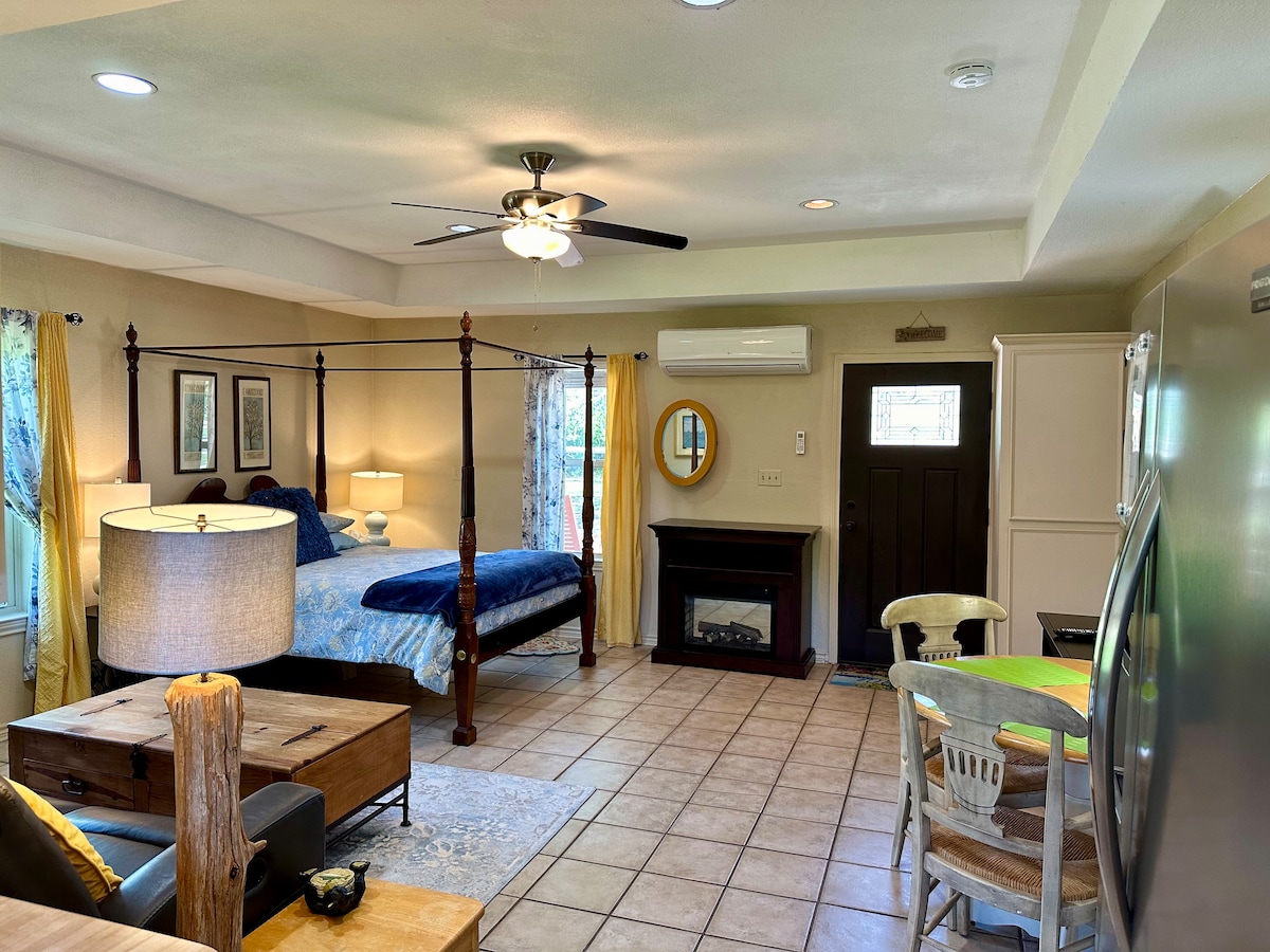 Acogedora casa de huéspedes tipo estudio privado en una propiedad de caballos con cocina totalmente equipada, baño separado, cama tamaño queen con comedor y sala de estar con un sofá reclinable doble ubicado en la parte trasera de una residencia privada en una propiedad de caballos de 2,5 acres. Fácil acceso a las autopistas. A minutos del lago.