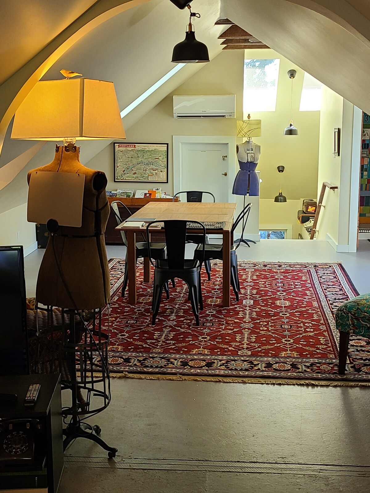 Estamos en una tranquila calle lateral, a la vuelta de la esquina de una dinámica escena gastronómica en Kerns, el quinto barrio más cool del mundo. Pasea hasta parques, música en vivo, tiendas vintage y un cine vintage. Camina, utiliza Lyft/Uber, ve en bicicleta o utiliza el increíble transporte público de Portland en todas partes. Las ventanas altas dan a la vegetación y a un acogedor porche. La casa de nuestra familia de 1900 se ha dividido en apartamentos separados. Es como una habitación de hotel artística, ¡pero mucho más hogareña!