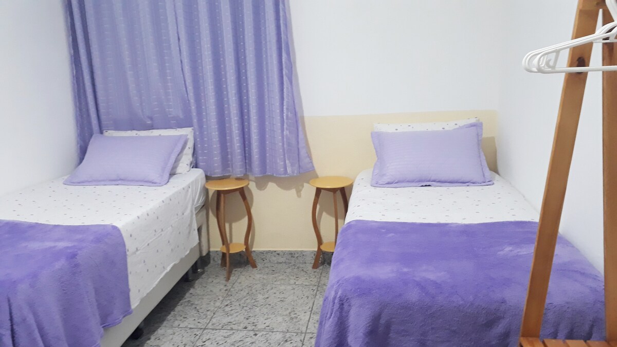 Cómodo y bien ubicado, el departamento se encuentra en un barrio tradicional de Belo Horizonte, cerca de Praça da Liberdade, centros comerciales, bares y restaurantes locales. Tiene sala de estar, cocina (microondas, estufa, minibar, cafetera, sartén y leche), balcón y baño con toalla y secador de pelo. En el dormitorio, dos camas individuales, TV por cable y un armario. La zona exterior tiene una piscina, sauna, gimnasio, terraza y estacionamiento privado. ATENCIÓN: Obras de renovación en el edificio vecino del 25 de diciembre al 26 de marzo, de 9:00 a 17:00.
