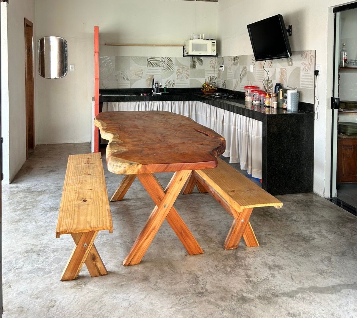 Hermosa casa sobre la arena, ubicada en una calle tranquila en el centro de Cumuruxatiba. Equilibrio perfecto entre tranquilidad y practicidad. Con un gran patio frente al mar, la casa te invita a descansar y a contemplar. Aquí te despertás con el sonido de las olas y podés disfrutar del mar a solo unos pasos de la puerta. La casa tiene 3 suites, un living amplio con puertas que integran el interior con el jardín y el paisaje marino, y también una cocina totalmente equipada para que puedas preparar tus comidas con tranquilidad.