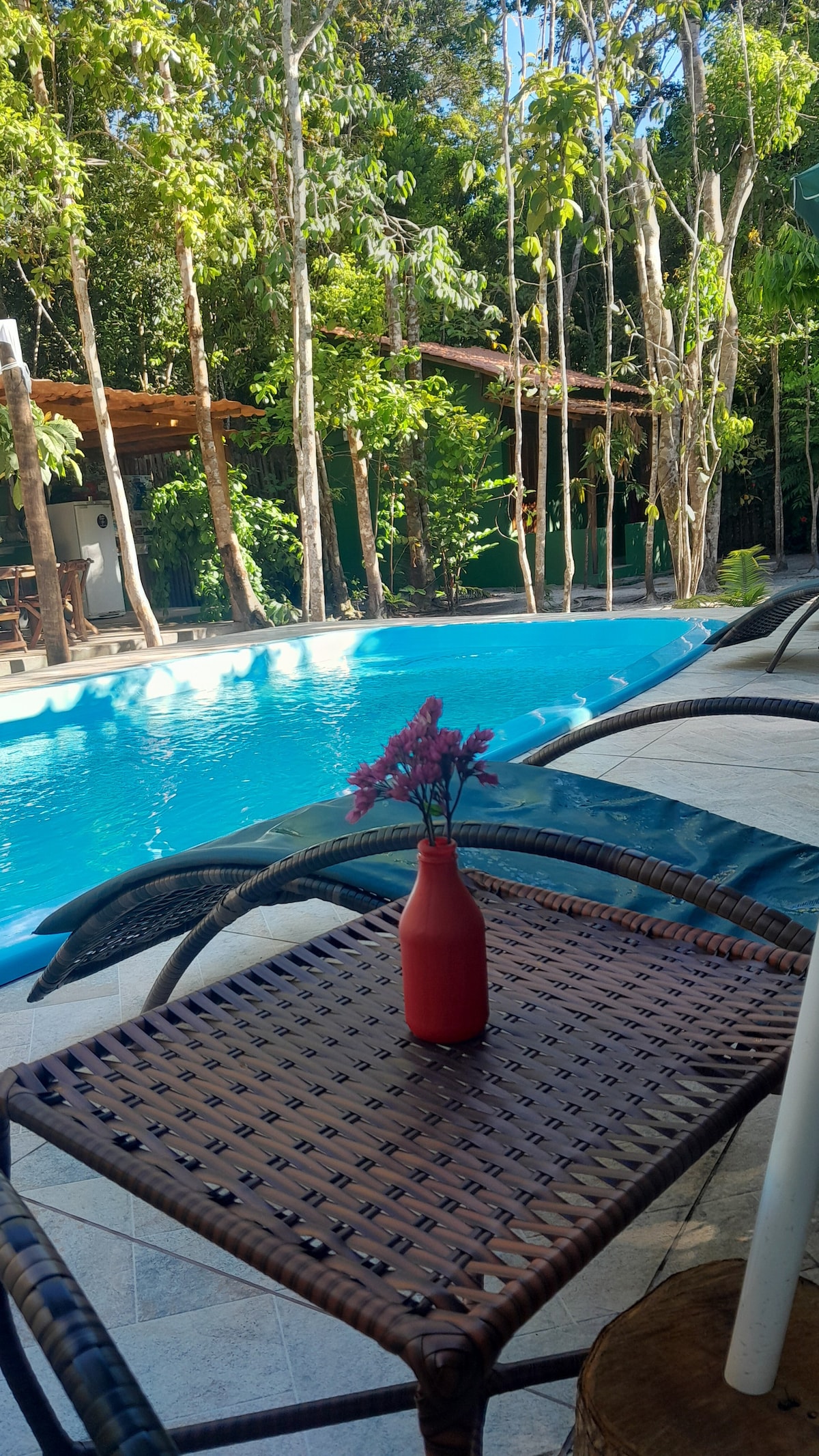 Casa amplia y confortable, cerca de la playa, para disfrutar y descansar con su familia y amigos. Tiene 2 habitaciones, una de ellas con baño, todas con aire acondicionado, 1 baño social, sala de estar y cocina americana, además de una pequeña zona de servicio. La piscina y la zona gourmet con barbacoa son compartidas. Condominio cerrado y seguridad las 24 horas. Tenemos otras 2 casas iguales a la nuestra en el terreno.