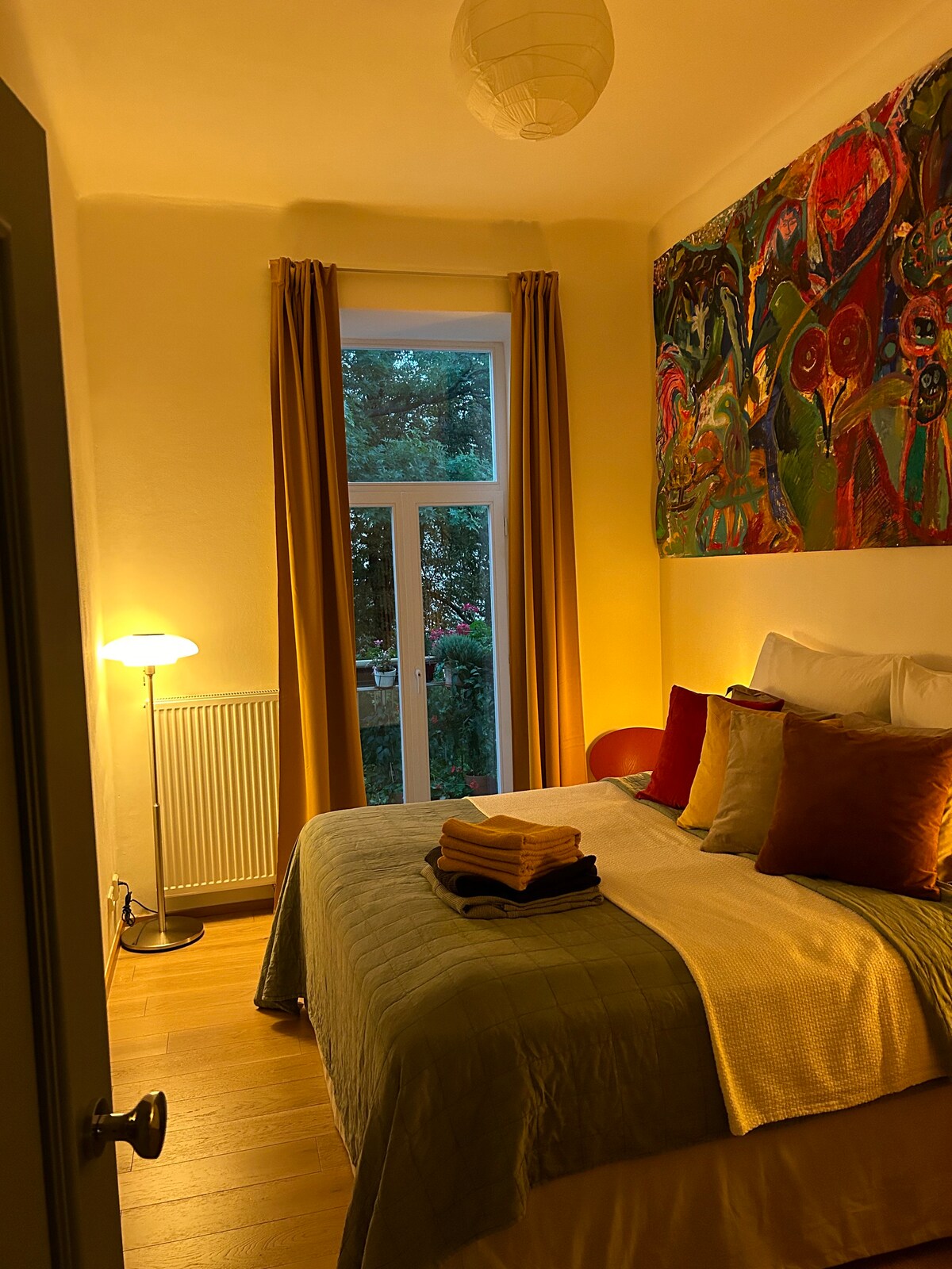 Cozy, sunny apartment just a 5-minute walk from Prague Castle. Southeast-facing windows in every room and a balcony offer a bright, peaceful retreat with Castle and park views. Only 300 m from public transport (subway, tram, bus). Ideal for families or up to 4 friends. -Cosmopolitan family-friendly quarter, surrounded by gourmet restaurants, cafés, and 2 large parks (Stromovka & Letná) 5-min walk to the subway, 30 min to the historic center on foot,10 min by public transport -2 bikes available