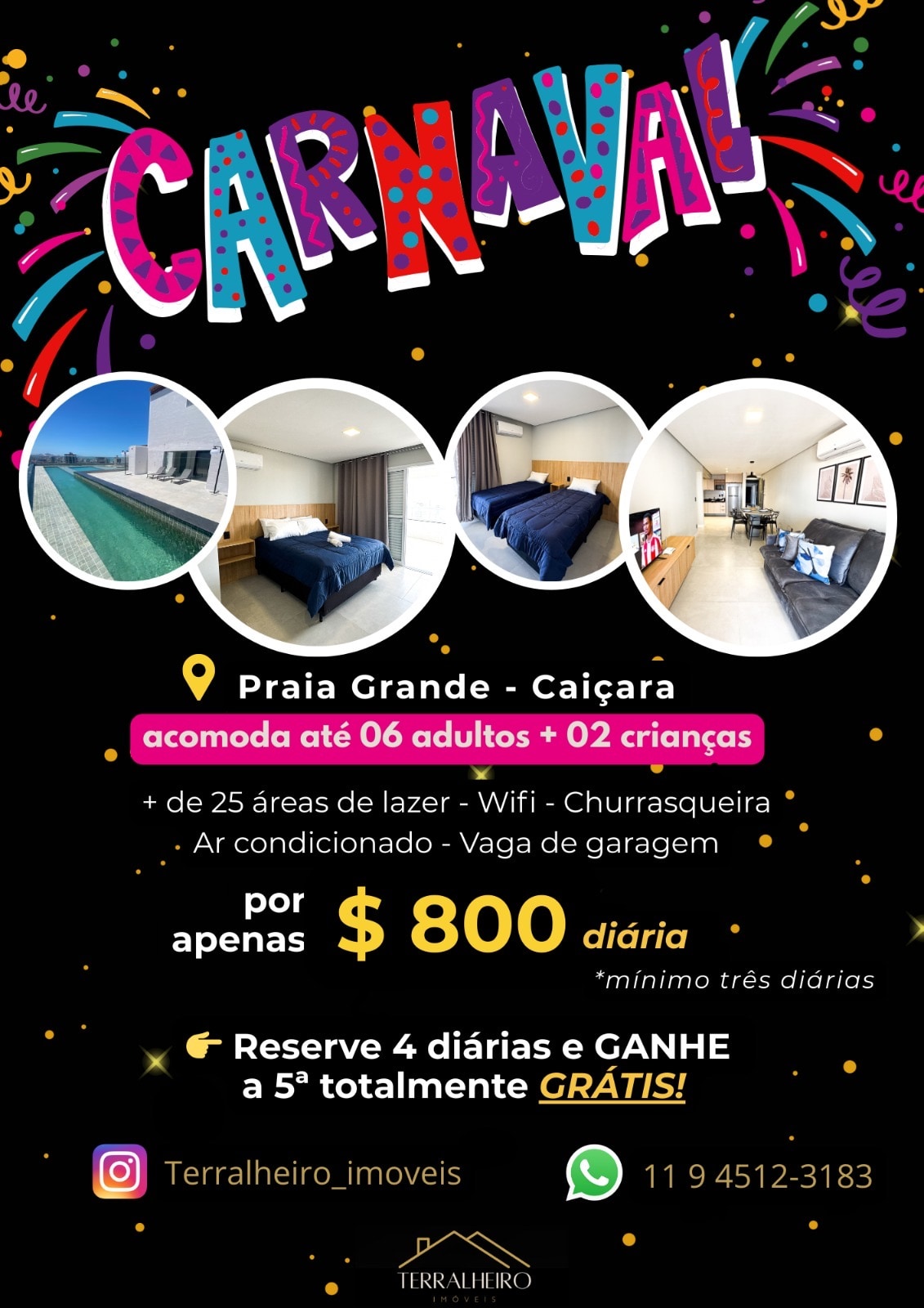 ¡Días increíbles a solo 8 minutos de la playa de Caiçara! Apê completo y amueblado, 1 habitación grande con 2 camas dobles, 2 baños, balcón gourmet con parrilla eléctrica y hermosa vista en el 8º piso. Habitación con LED, sonido incorporado y yeso decorado. Cocina equipada, muebles planificados, ocio con pileta, sala de juegos y fiestas. Cerca del mercado, panadería, carretera y comercio. ¡Comodidad y practicidad en la costa!