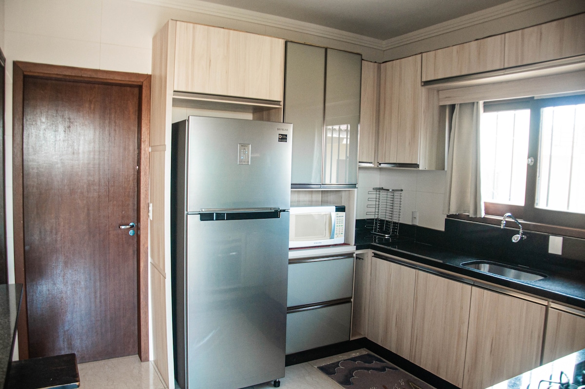 Aconchegante casa de dois pisos para passar as férias com a família ou até mesmo um feriado prolongado, a casa dispõem de três quartos confortáveis , ampla com muito estilo. A casa fica em uma área de 450m2 onde encontra-se também a casa do anfitrião, nosso ambiente é familiar, hospitaleiro e muito tranquilo, deixamos os hóspedes o mais a vontade possível , a entrada de carros é individualizada a piscina é exclusiva dos hóspedes, o anfitrião esta sempre disponível para qualquer ajuda.