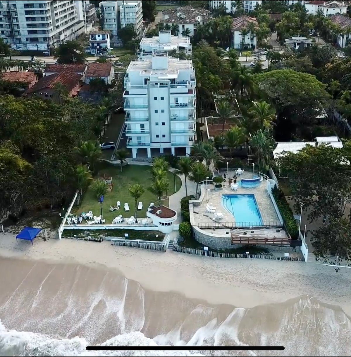 Relaxe com toda a família neste resort de luxo. A suíte tem o privilégio da vista para o mar direto da cama. Assim, a praia é a primeira coisa que verá ao abrir os olhos, além do prazer de dormir ao som das ondas quebrando na areia. Nade na piscina, enquanto vislumbra o azul do mar. Vá e volte da praia várias vezes ao dia, sem necessidade de pegar carro e enfrentar trânsito. É a praia com melhor infraestrutura da cidade, com mercados, restaurantes, padarias, farmácias bem pertinhos de você. :)
