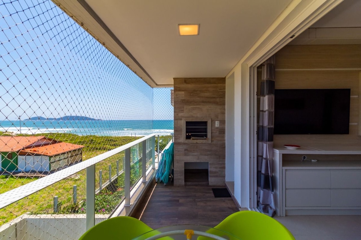 Apto pé na areia e vista para o mar