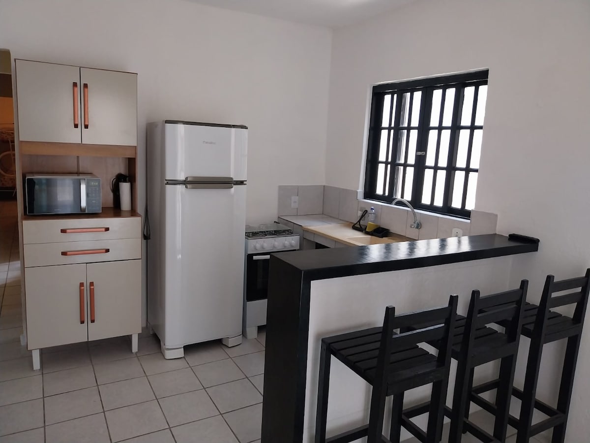 Situado en Jureia, a 30 minutos de Iguape. Casa muy acogedora, indicada para personas que quieren pasar el rato con amigos o incluso familiares. La casa lo tiene todo. Mi casa está muy cerca y estoy disponible para ayudarte en caso de que sea necesario. Se encuentra a 5 minutos a pie del centro y a 10 minutos de la playa. La playa tiene 18 km de largo y tiene una hermosa costa de piedra, cascadas y que se encuentra con el río con el mar. Casa totalmente equipada con TV, duchas eléctricas, camas y cocina completa.