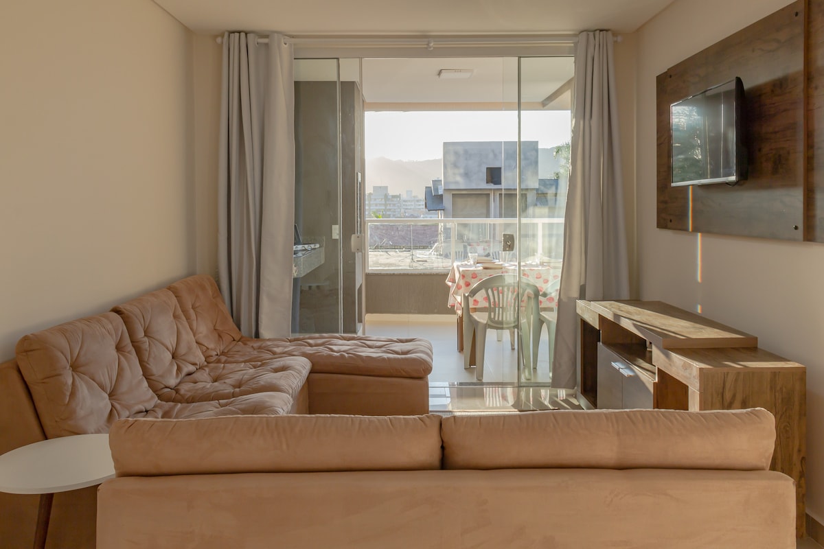 Apartamento con excelente ubicación, muy completo (incluso kit de playa y alexa) y súper acogedor. - 1 suite + 1 habitación equipada con cama box, colchón auxiliar, split, Smart TV y ropa de cama. - Amplio balcón con parrilla y hamaca para descansar (vista maravillosa), ventilado e iluminado por el sol de la mañana y la tarde. - Cocina equipada. - Sala con Smart TV, sofá, sillones y ventilador de techo. Perfecto para familias o parejas con niños, con capacidad para 4 adultos y 2 niños. Siga @apto.bombinhas en Insta