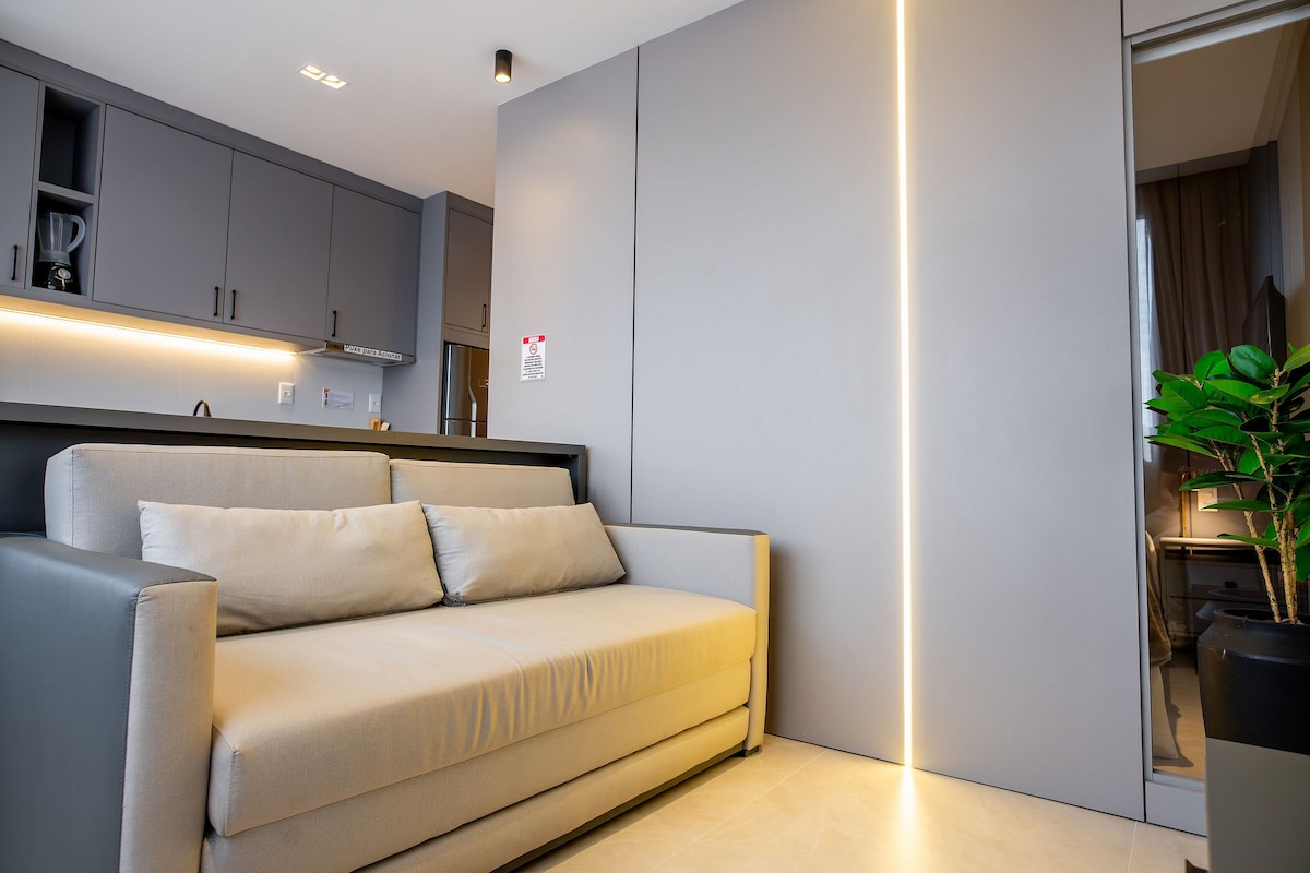 Estudio equipado en el centro de Bombinhas, diseñado para quienes valoran la estructura y ubicación estratégica. A solo 180 m de la playa, con espectaculares vistas a la ciudad y al mar, ofrece una cama queen size, sofá cama, aire acondicionado, Smart TV y una cocina equipada. La zona gourmet con barbacoa realza la experiencia. El edificio cuenta con recepción 24 horas, aparcamiento cubierto y una azotea con piscina y vistas al mar. Reserve ahora y disfrute de Bombinhas con más exclusividad.