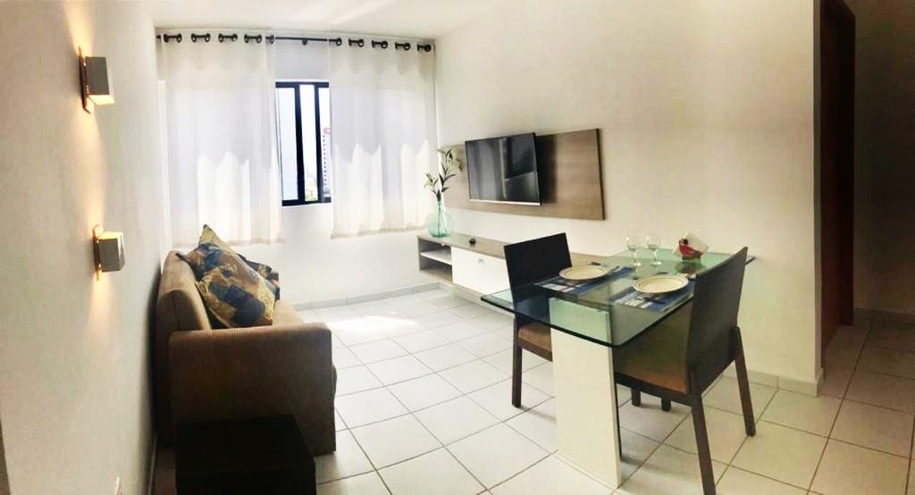 El departamento tiene un dormitorio, con comedor y sala de estar, además de una hermosa vista del parque de Jaqueira, además de estar cerca del Parque Tamarineira. Tiene capacidad para dos parejas cómodas. Está cerca de restaurantes, supermercado, panadería, farmacias y una gran variedad de tiendas.