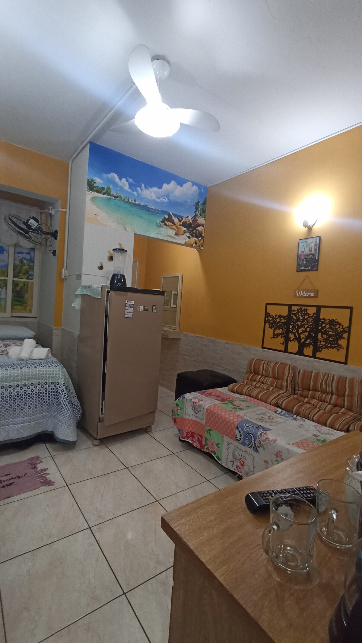 Mi PISO está recién reformado, se encuentra en el centro de Muriqui, tiene una cocina americana y 1 baño con ducha eléctrica. No tiene aire acondicionado, sin embargo, tiene 1 ventilador de techo. Está cerca de tiendas, un centro de salud y bares. Cuenta con TV 32" Smart, WIFI, NETFLIX y GLOBOPLAY. El lugar es muy ventilado, tranquilo, el nivel de violencia aquí es casi nulo. En los quioscos de la playa hay música en vivo, la playa en temporada alta siempre está muy animada.