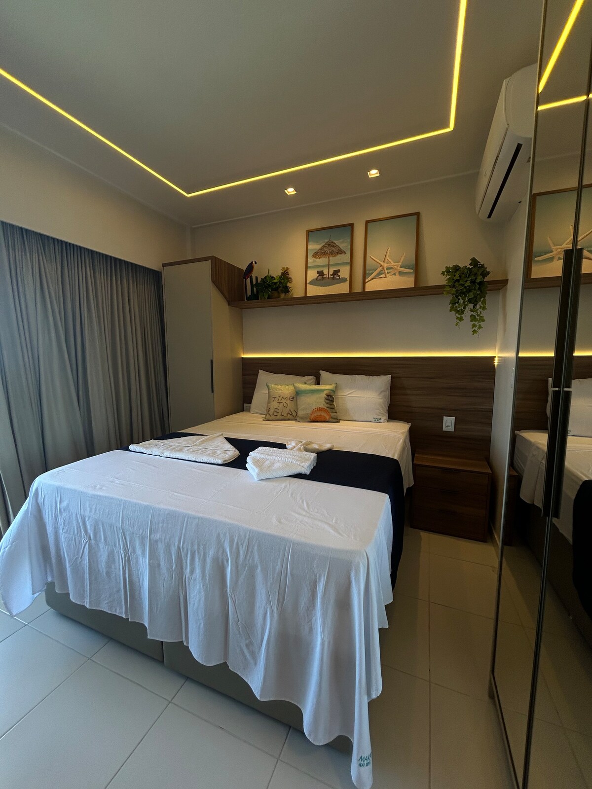 Un hermoso y acogedor apartamento en un paraíso natural, con 2 dormitorios (uno en suite), dos baños, sala de estar, cocina pequeña y balcón. Totalmente equipado y decorado para los huéspedes de gusto refinado. Tiene una gran estructura, piscinas diversas (piscina infantil, adultos, con raia) gimnasio, sauna, briquedoteca, parque infantil, sala de juegos, varias canchas, espacio de comida rápida, acceso privado a una hermosa playa (pie en la arena), espacio de contemplación y mucha naturaleza.