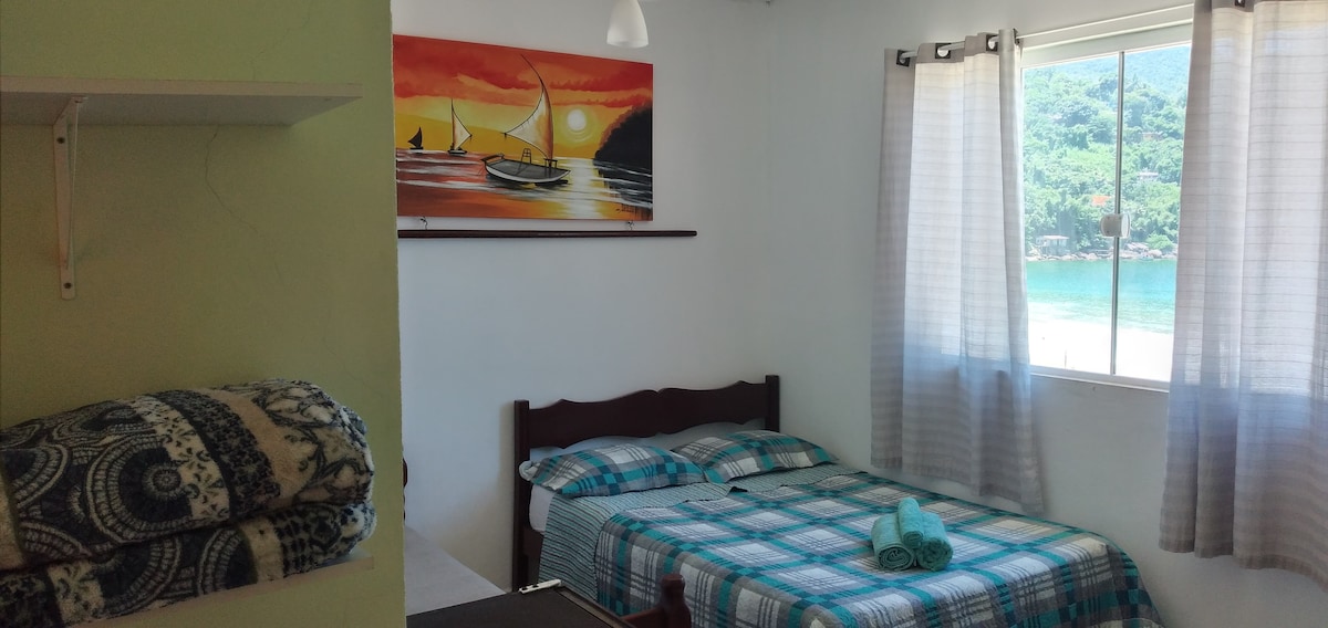 Hospedagem em frente ao mar na paradisíaca vila de pescadores de Proveta localizada na ilha grande .A acomodação conta com 8 camas, cozinha equipada, chuveiro com água quente, internet, e contamos com ótimas parcerias para passeios na região. a principal porta de acesso terrestre para a Praia de Aventureiro, Praia dos Meros, Praia Grande e Vermelha no lado oceânico da Ilha Grande e a poucos minutos da famosa gruta dos acaiá.