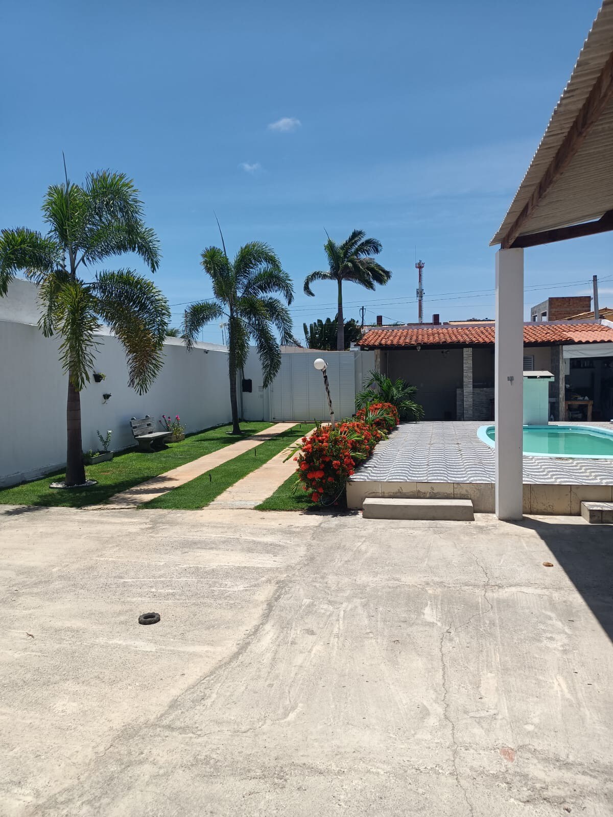 Granja rodeada de vegetación, aireada, espaciosa y perfecta para aquellos que quieren descansar y reunirse con familiares y amigos, con piscina, barbacoa, área de ocio, 3 dormitorios, 2 de ellos suites, aire acondicionado, sala de estar/comedor y cocina equipada con elementos básicos para su estancia. Situado en Mosqueiro, a 350 metros del río Vaza Barris, a 700 metros del malecón del atardecer y a 1500 metros de la playa.