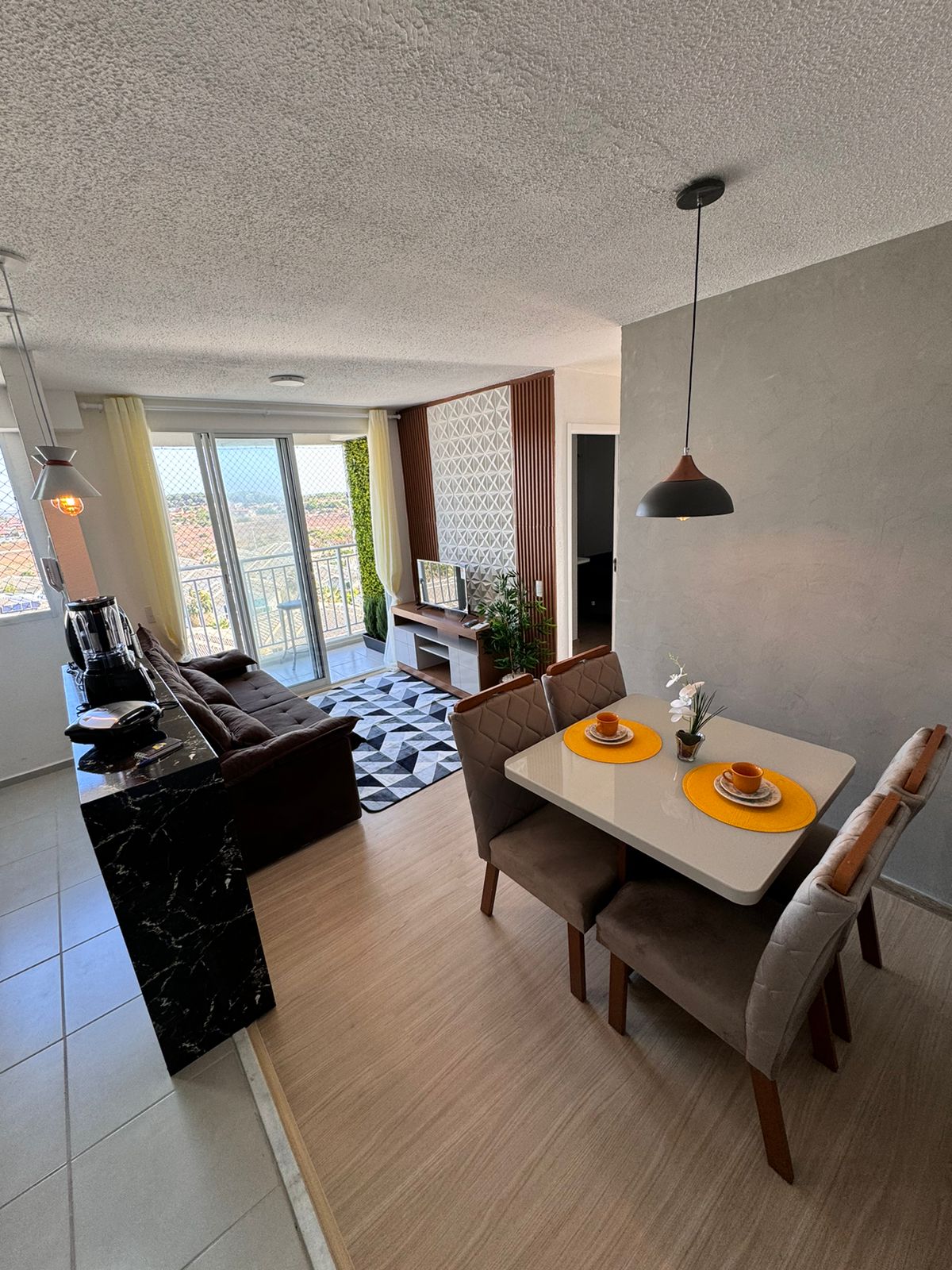 Apartamento de 01 suite completa en condominio cerrado con seguridad y artículos de ocio y diversión: 4 piscinas, gimnasio con aire acondicionado, sala de juegos, jacuzzi y espacio para niños. En el apartamento hay sábanas de cama y baño, una cocina completa con nevera, microondas, cafetera, platos y cubiertos. Hay una TV inteligente en el dormitorio con una cama doble y otra TV inteligente con una cama individual en la sala de estar. Tenemos aire acondicionado dividido en el dormitorio y el living. El apartamento tiene WIFI gratuito de excelente calidad, así como estacionamiento cubierto gratuito.