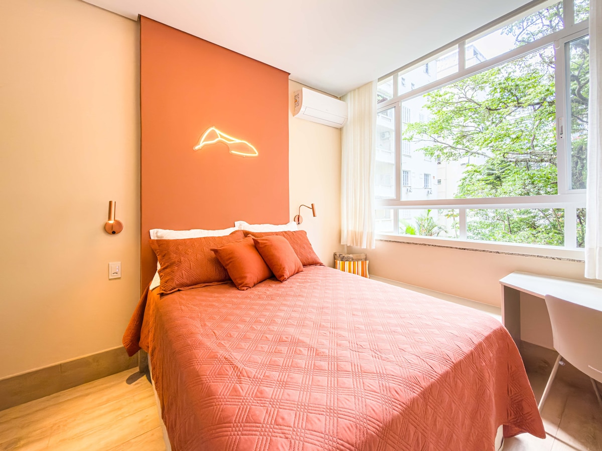 Venha curtir o lifestyle carioca em Copacabana! Studio aconchegante e totalmente reformado, com ar condicionado, workstation e internet de alta velocidade, Smart tv e 03 minutos a pé da praia de Copacabana. Localização privilegiada na quadra da praia, região boêmia com os melhores restaurantes, bares, mercados, farmácias, lojas e apenas 650m da estação de metrô. São 38m² com ambientes independentes, cozinha, banheiro, sala e quarto (cama casal e sofá cama) Tenha uma ótima estadia ! :)