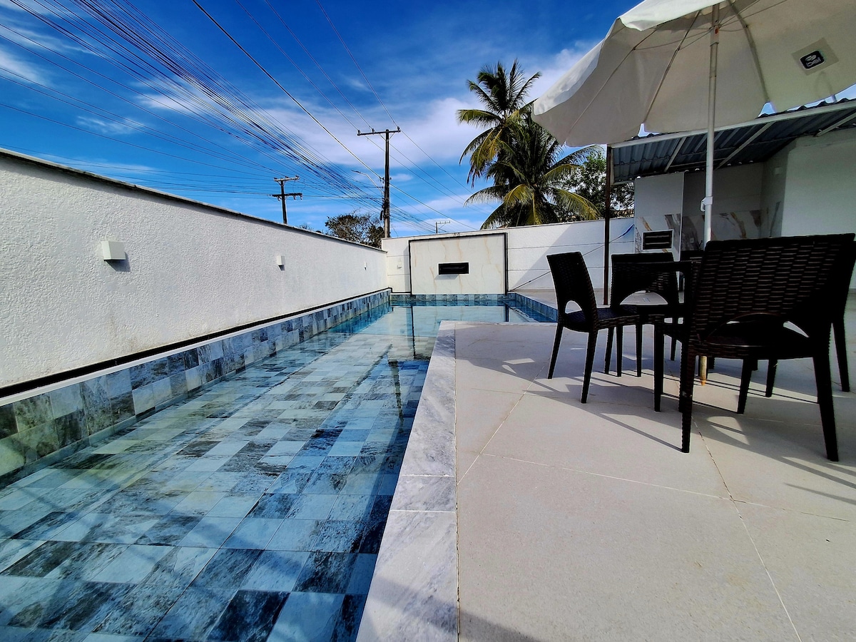 A orillas del mar, ubicada a 10 minutos del centro y a 5 minutos del ferry (en coche o furgoneta), la casa se encuentra en una de las mejores playas de Arraial D'ajuda (Araçaípe), con acceso gratuito, directamente por el patio trasero, para los huéspedes. Contamos con un amplio espacio de estacionamiento cerrado, que ofrece comodidad y seguridad. Internet wi-fi, piscina y 3 opciones de parrillas, kayaks para pasear (consultar disponibilidad). Excelente opción para quienes buscan un ambiente familiar y tranquilo.