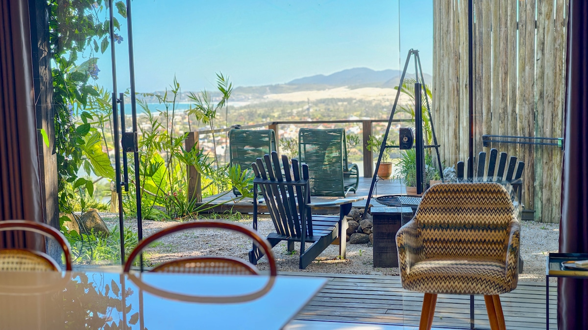 Cabaña panorámica con vista al mar