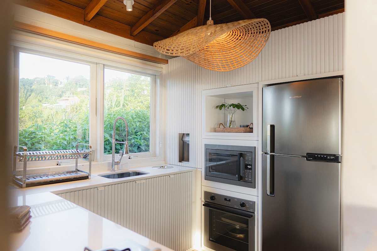 Ubicación inmejorable en Praia do Rosa: a solo 100 m de la playa y 400 m del centrinho. Buda da Lagoa combina vistas espectaculares al mar con detalles de alta calidad. Las casas ofrecen espacios amplios, cocina completa, decks con parrilla, Smart TV, aire acondicionado en todos los cuartos, servicio de limpieza diario y Wi-Fi fibra óptica de 600 Mbps. Ideal para disfrutar con familia o amigos, conectarse con la naturaleza y relajarse sin necesidad de usar el auto.
