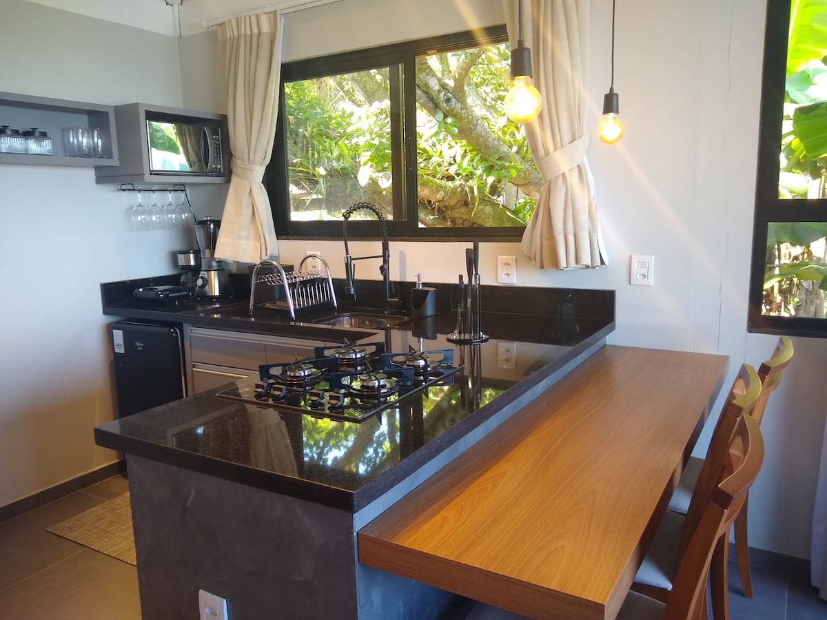 Disfrute del refugio EXCLUSIVO Y PRIVADO con jacuzzi caliente, en medio de un bosque con espectaculares VISTAS del atardecer en Lagoa Encantada. Las suites cuentan con aire acondicionado, TV y Wi-Fi de 600 MB Ofuro caliente y con hidromasaje. Quiosco Espacio Gourmet completo. Hay dos suites, una con una cama doble y la otra con dos camas dobles, no se alquilan por separado. Cerca de la playa y del centro. Acceso a la playa por sendero o escalera exclusiva, un hermoso ejercicio para el cuerpo y el alma.