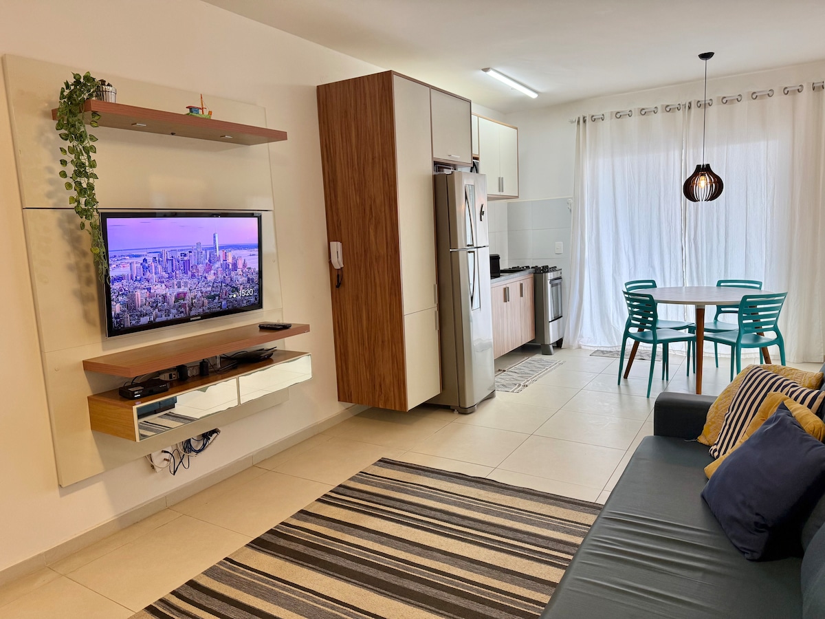 Lindo apê a 300 m. da praia - Ar, pisc. e churrasq