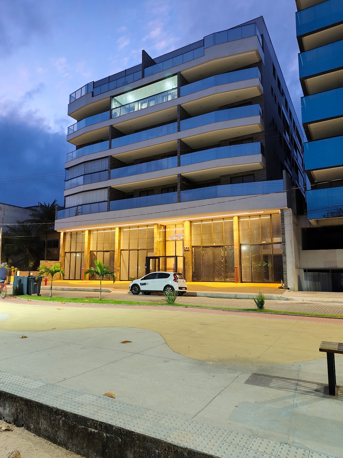 Apartamento de 2 dormitorios, uno con una cama doble y el otro con 2 camas dobles, aire acondicionado y cortina con apagón en ambos dormitorios, vista al mar en el balcón, playa cercana, cocina con refrigerador, estufa, microondas, sándwichera, filtro con agua helada, lavadora, TV , garaje cerrado con un espacio, edificio nuevo con ascensor. Nota: No hay ropa de cama ni toallas disponibles. Solo hay almohadas disponibles.