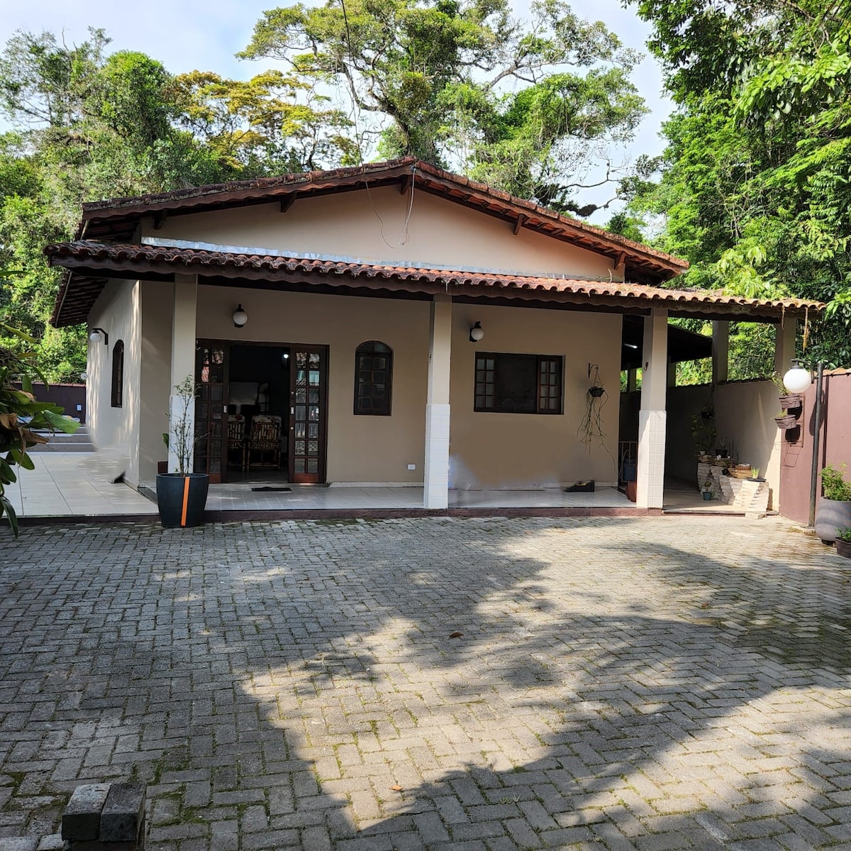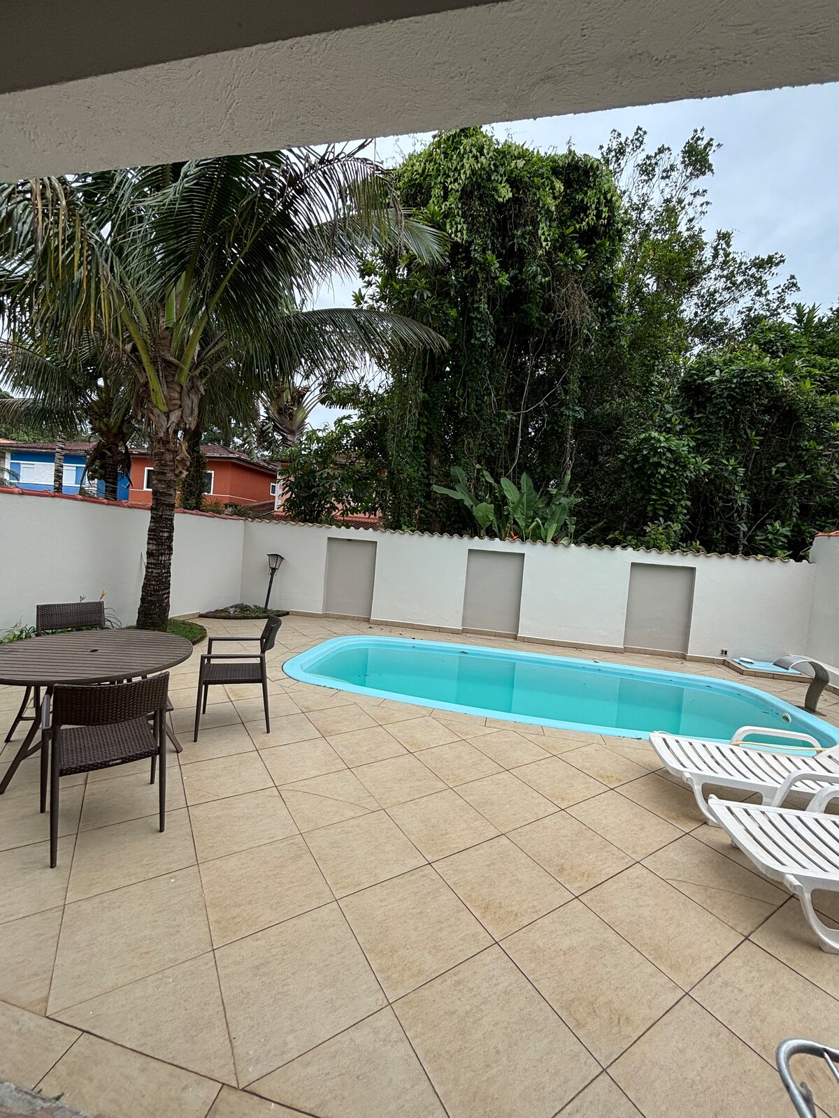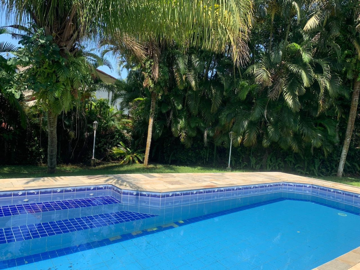 Casa dois andares com infraestrutura completa, apenas 2 minutos a pé da praia. 4 suites com ar condicionado( Uma no térreo ), wi-fi 500mg , Smartv,. Área externa contemplando piscina, Jacuzzi ,churrasqueira, forno de pizza, forno a lenha e mesa ao redor da natureza, redes, lareira na sala, caiaques. Condomínio seguro com reconhecimento facial, rondas 24hs, praia tranquila e vazia, rios. Cozinha completa,2 geladeiras com freezer, freezer na dispensa,máquina de lavar roupa, quartinho.