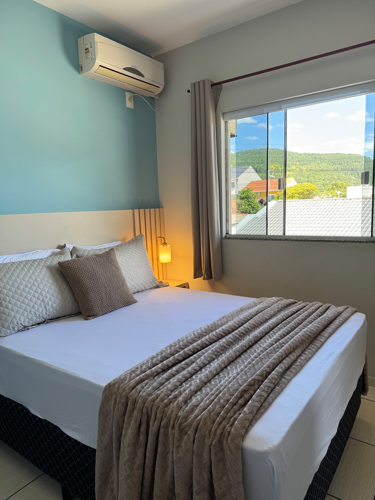 Relájate con toda la familia en este alojamiento tranquilo. Accede a la red social insta para más detalles. @estadiaempalmas Aire acondicionado en todas las habitaciones y sala/cocina. Internet de banda ancha (fibra) y smart TV de 60". Cerca de restaurantes, farmacias y mercados. Disfrute de sus vacaciones con comodidad y sofisticación junto a una de las mayores bellezas naturales de Santa Catarina, la playa de Palmas do Arvoredo.