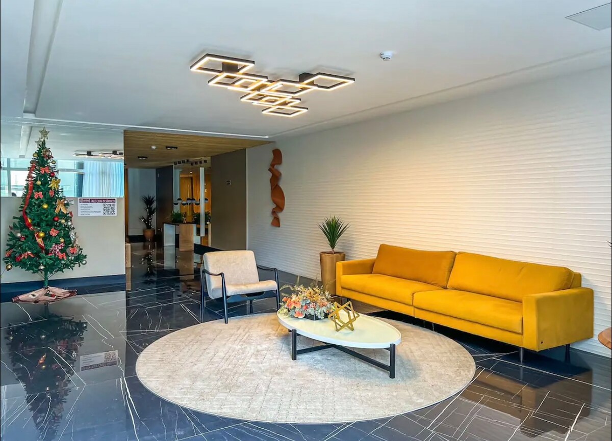 Situado en el centro de la ciudad, frente al mar, cerca de las mejores playas y comercios locales. > Self Check-in > Conserjería 24h > Estacionamiento > Ascensores > Wi-Fi (400 MB) > Cama Queen > Cocina completa > Espacio para home office > No se permiten mascotas. Acceso a pie a las playas de Areia Preta, Praia das Castanheiras y Praia do Riacho A solo 10 minutos de Praia do Morro y a 10 minutos de Praia da Bacutia Venga a alojarse en este increíble lugar, cerca de supermercado, panadería, farmacia, etc.
