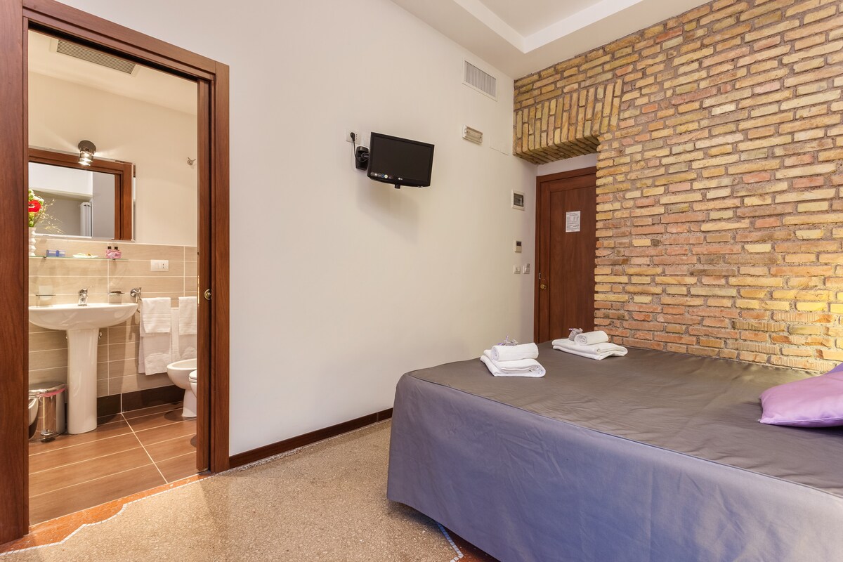 Consta de una entrada con armario empotrado, una gran cama doble y baño privado en la habitación. El sistema de climatización garantiza aire caliente/frío. La habitación es luminosa y silenciosa, con vistas completamente exteriores.