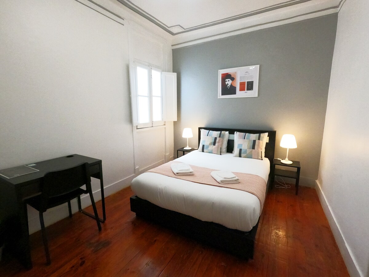 Este elegante dormitorio ha sido recientemente renovado y recién amueblado. Tiene abundante luz natural y dos pequeños balcones frente a la hermosa "Rua da Alegria". Gracias a las ventanas reductoras de ruido y las persianas opacas, dormirás tranquilamente. Tendrás un baño privado y acceso a una pequeña cocina compartida donde puedes preparar un café o comidas sencillas. Gracias a un sistema de llegada autónoma e instrucciones claras, podrás acceder fácilmente a tu dormitorio a través de una caja de seguridad para llaves.