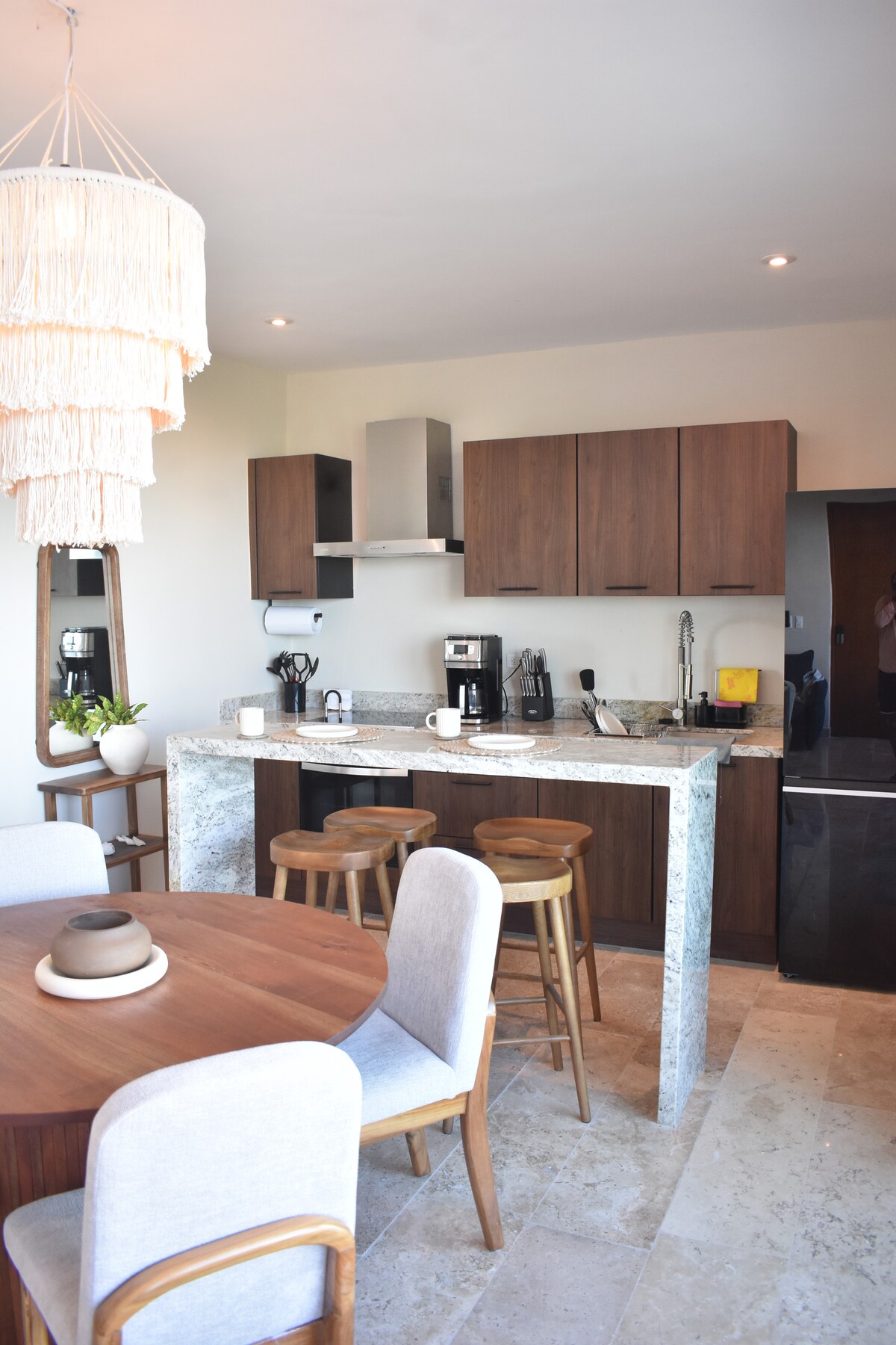 Hermoso departamento con un toque mágico a 50 m de la playa en segunda fila , esta equipado completamente y así poder ofrecer comodidad y relajación en tus vacaciones . Es un complejo con alberca y canal de nado . Cuenta con área común con asador en El RoofTop . No Mascotas . No apto para niños ni bebés. Prohibido hacer fiestas o reuniones. Alojamiento únicamente 2 personas adultas.