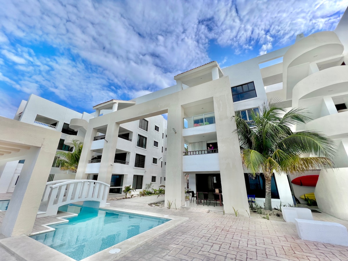 Hermoso departamento en SEGUNDA FILA a 30 metros del mar caminando y a 5 minutos en auto del malecón de Progreso. El condominio ofrece alberca con Palapa, camastros, baños, mesas, sillas, también tenemos un roof bar donde puedes hacer un asado o simplemente disfrutar la vista, estacionamiento, muchas palmeras y vegetación y la paz de la cercanía al mar. En el malecón de Progreso hay deliciosos restaurantes, bares, actividades, hermosas playas y paseos. Todo a media hora de Mérida.