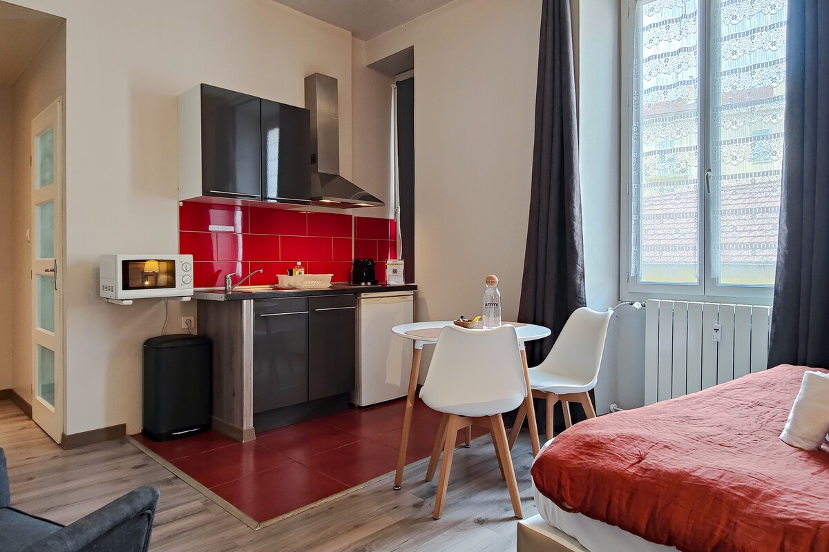 ⭐️ Está a solo dos pasos de disfrutar de un encantador estudio completamente renovado en el corazón de Saint Ambroix para 1 o 2 personas, con todas las comodidades en el centro de la ciudad. Con ropa de cama nueva de calidad, aire acondicionado y cocina equipada☀️ ☀️ Cerca de Alès, Ardèche y Cévennes. ➡️ Disfrute de sus vacaciones o viaje de negocios en un bonito y cómodo estudio, ropa de cama y limpieza incluidos ➡️ Ubicación ideal, cerca de tiendas y restaurantes