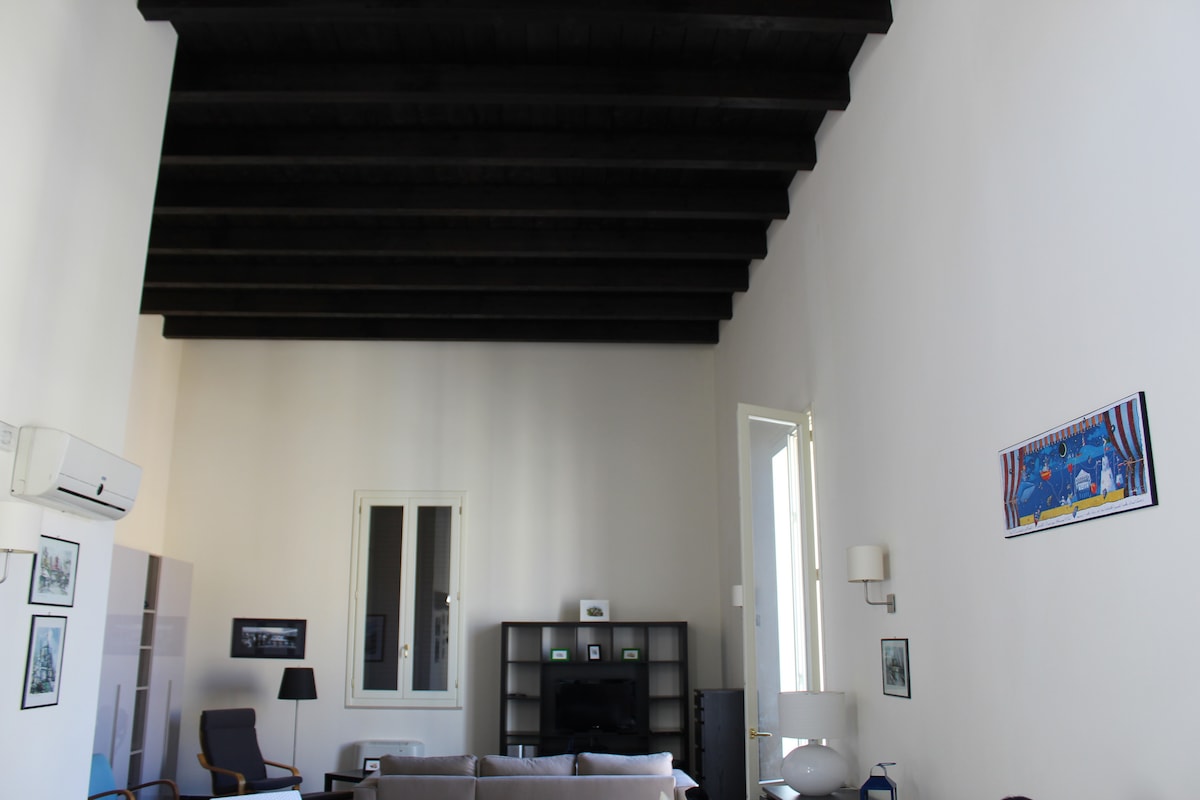 La casa se encuentra en una plaza cerca del centro histórico, en el tercer y último piso de un edificio del siglo XVII, que fue un teatro. Hay dos terrazas: una de 40 m² con lavadero anexo y otra de 120 m² con vistas al mar. En toda la casa hay parqué de madera. Hay 2 aires acondicionados, 2 televisores inteligentes, dos baños y un baño turco con cromoterapia. La casa, amueblada con muebles antiguos, es acogedora, muy luminosa y está lejos del ruido. Mira el anuncio de Puglia: https://youtu.be/nSFyATE0pTc