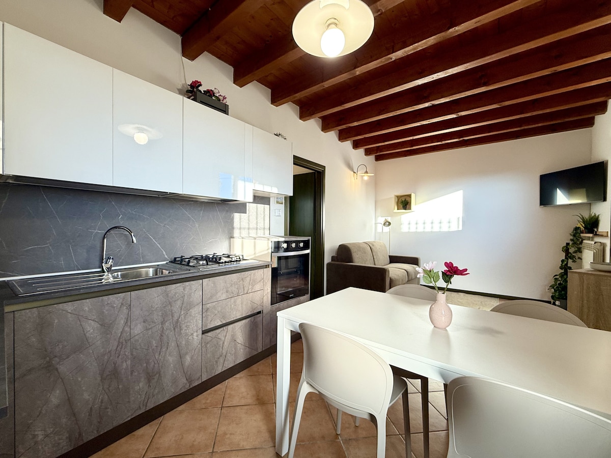 Acogedor apartamento con vistas panorámicas al castillo de Costa di Mezzate, un pueblo medieval en la provincia de Bérgamo rodeado de verdes colinas. Un pueblo encantador rodeado de naturaleza e historia, tranquilo, alejado del frenesí de la vida citadina, pero con todos los servicios. Debajo de la casa encontrará un mini mercado, un bar, una peluquería; a unos 100 metros hay una cervecería+cocina; en el centro hay una excelente pizzería napolitana, panadería y farmacia.