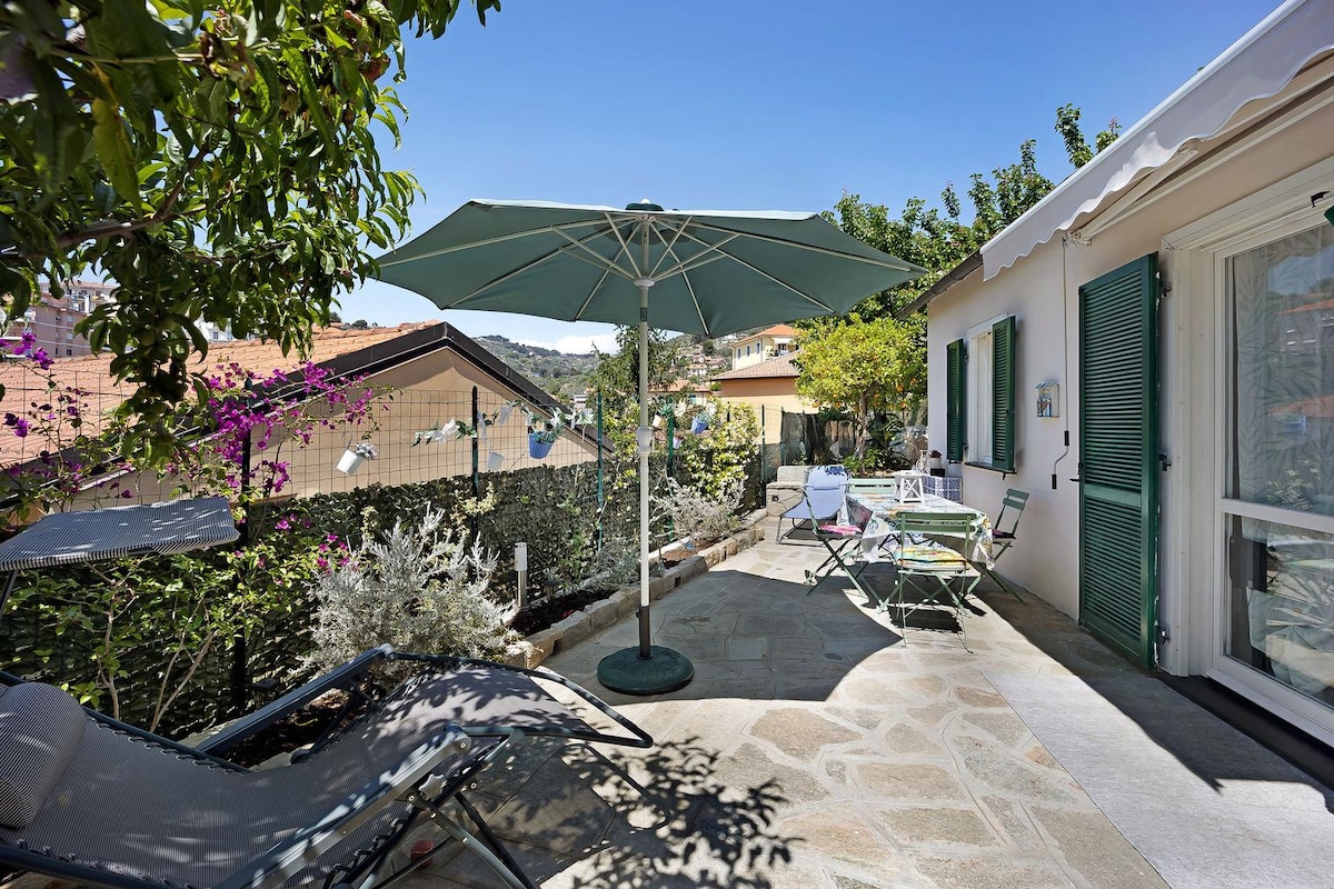 Sulla collina sopra il piccolo paese di Cipressa, a 3 km dalle spiagge di San Lorenzo e Santo Stefano e dalla pista ciclabile, l'alloggio è la dependance di un villino con una vista mare unica. E' la soluzione ideale per trascorrere una vacanza indimenticabile lontani dalla confusione, prendendo il sole sulla terrazza e facendo bellissime passeggiate guardando il mare.