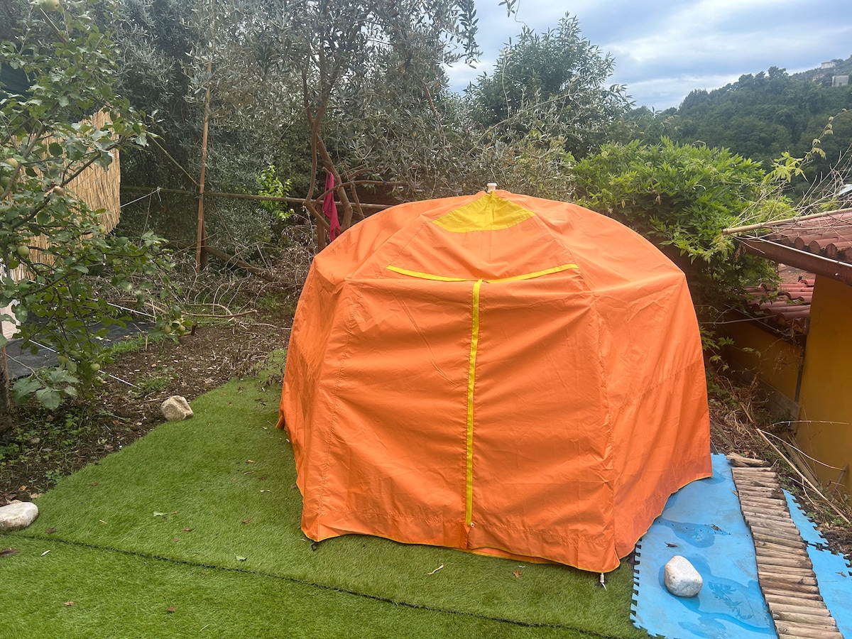 Glamping inmerso en la naturaleza virgen dentro de una granja que produce aceite de oliva virgen extra y miel. Un lugar para encontrarte y desconectarte del ajetreo y el bullicio de la rutina ideal para redescubrir y relajarte, aquí puedes dormir en los márgenes de un bosque de robles y despertarte con el canto de los pájaros. Para darte la bienvenida encontrarás a Renata, nuestra burra, y Luna y Snow, las cabras con las que podrás hacer hermosas actividades.