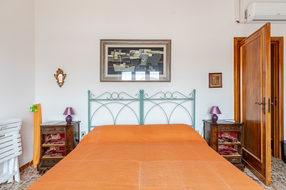 Studio apartment in a subdivided flat (map among the images), consisting of a double room with private bathroom no kitchen, only tourist rental. Wide view to the sea, table for meals, fridge, kettle, coffee machine, air-conditioned. Events and festivals in the summer program, presence of people in the vicinity of the accommodation at all times, earplugs recommended.