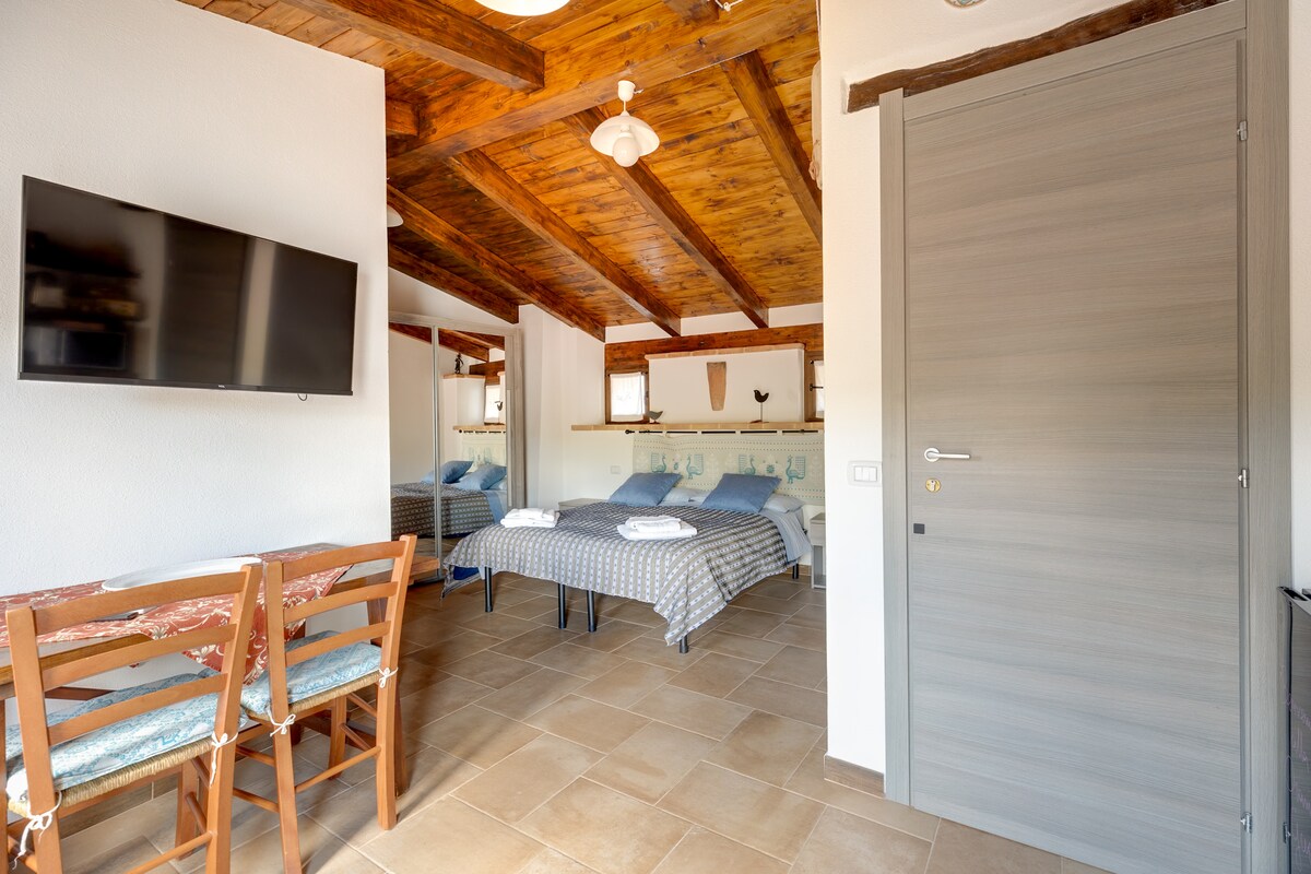 Le Corti Sarde se encuentran en el centro histórico de Bari Sardo. Son casas en la primera planta con terraza panorámica hacia el centro del pueblo. Sala de estar con TV y servicios de streaming, sofá cama, cocina y mesa de comedor para 3 personas, dormitorio doble con armario, baño con ducha. Los alojamientos están completamente climatizados y equipados con sábanas y toallas. El personal está a su disposición para proporcionarle información sobre la zona y las excursiones.