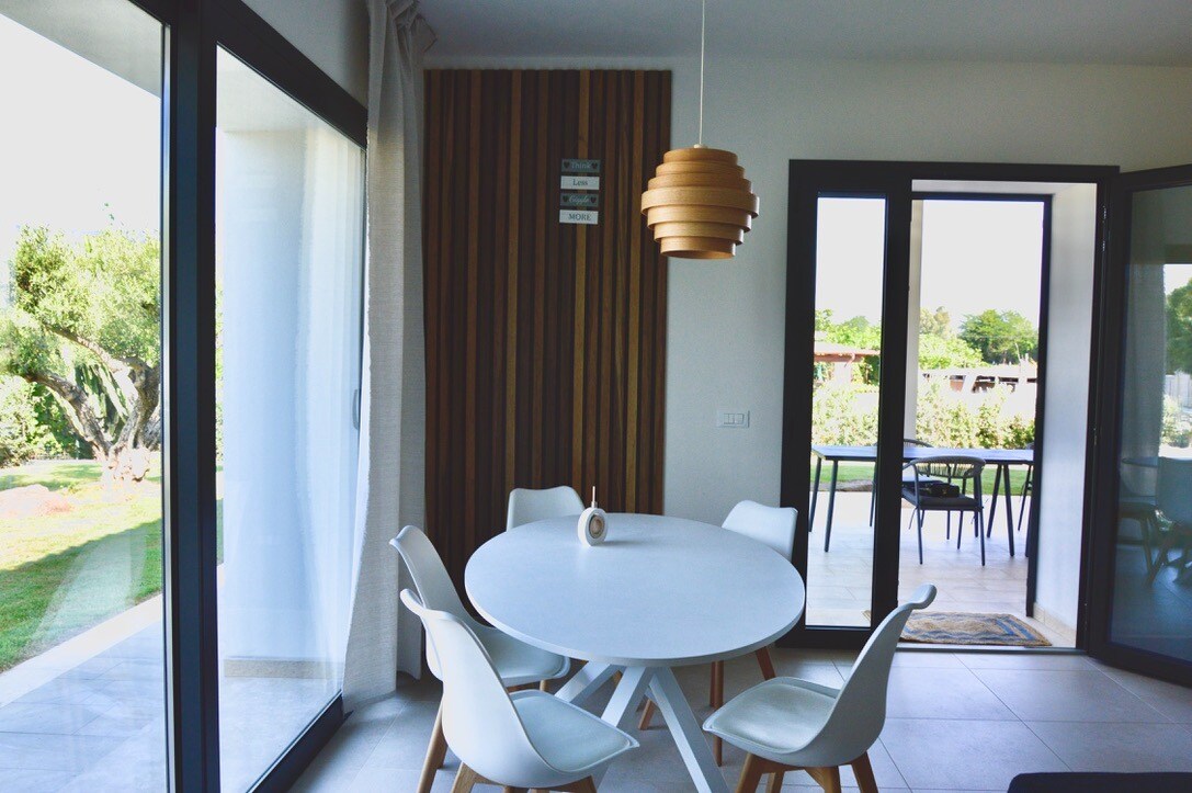 La villa está rodeada de vegetación, externamente encontrarás una hermosa piscina dividida en dos áreas de 45 metros cuadrados de agua salada con temperatura natural siempre abierta. El área de relajación de 20 metros cuadrados con jacuzzis está cubierta por un obturador electrónico y se calienta durante todo el año. (Del 1 de noviembre al 30 de abril) comunícate con los propietarios para acordar el posible costo de la calefacción. También es posible alquilar una SUITE de 45 metros cuadrados. 4/5 personas tienen un costo adicional, es la habitación 4 en la descripción.