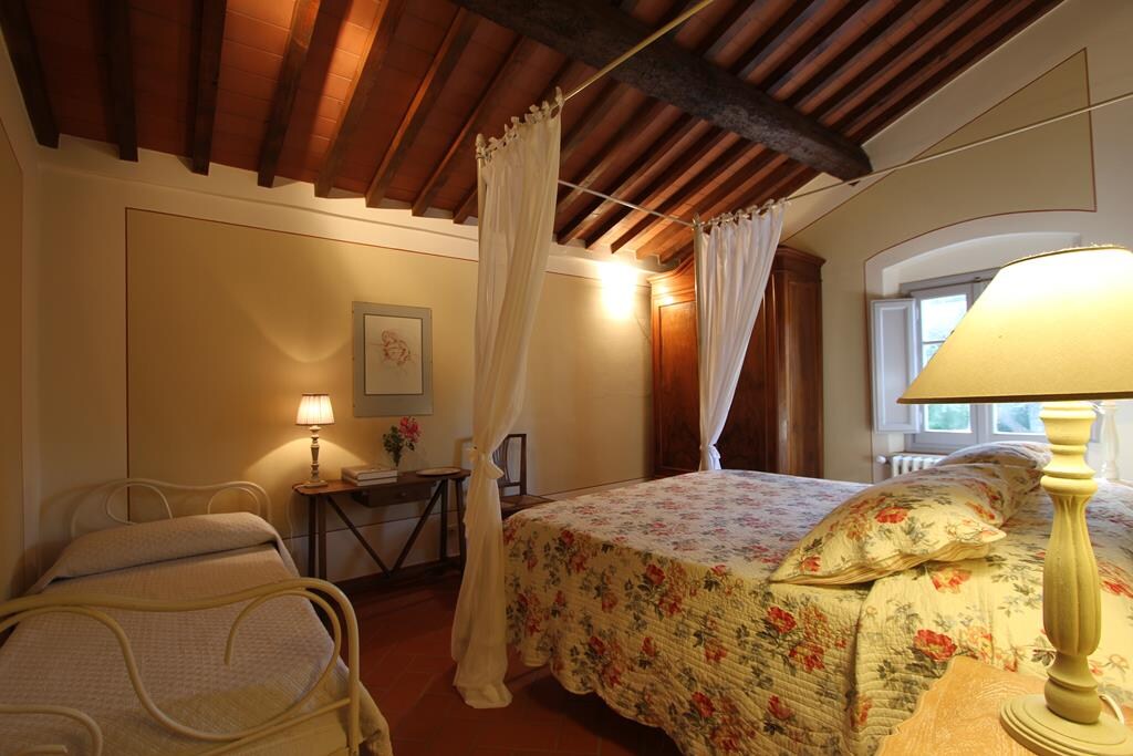 En un edificio de 1200 en piedra suave, parte de un castillo antiguo, entre Florencia y la zona de Lucca, se alojará en el primer piso una suite privada compuesta por una sala de estar central con chimenea, televisión inteligente vía satélite, sofá y sillones, un dormitorio doble, otro dormitorio con dos camas individuales. Un baño con ducha, lavabo y wc completa esta habitación. La vista desde la habitación es encantadora, en la montaña y en una aldea medieval a pocos kilómetros de distancia.