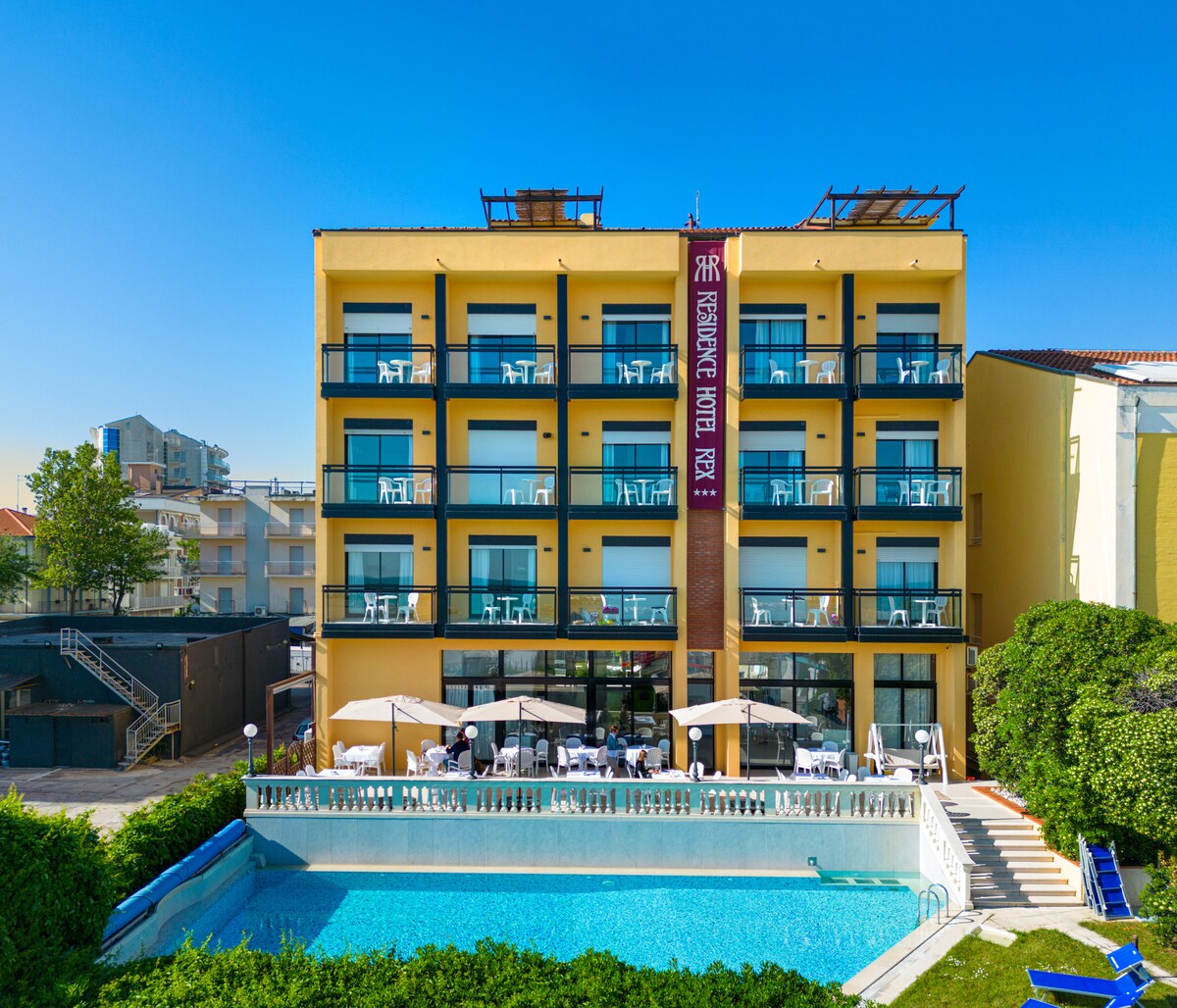 La Residencia Rex con gran piscina está directamente en el mar y muy cerca del centro, tiene todas las comodidades a su disposición, sábanas y toallas con cambio semanal, estacionamiento privado, todo lo necesario para cocinar y comer incluso en nuestras terrazas y balcones directamente en el mar, amplias zonas comunes, la proximidad al centro, el supermercado 50 metros, muchos restaurantes, pizzerías y posadas alrededor para disfrutar, cada apartamento tiene al menos un balcón o terraza