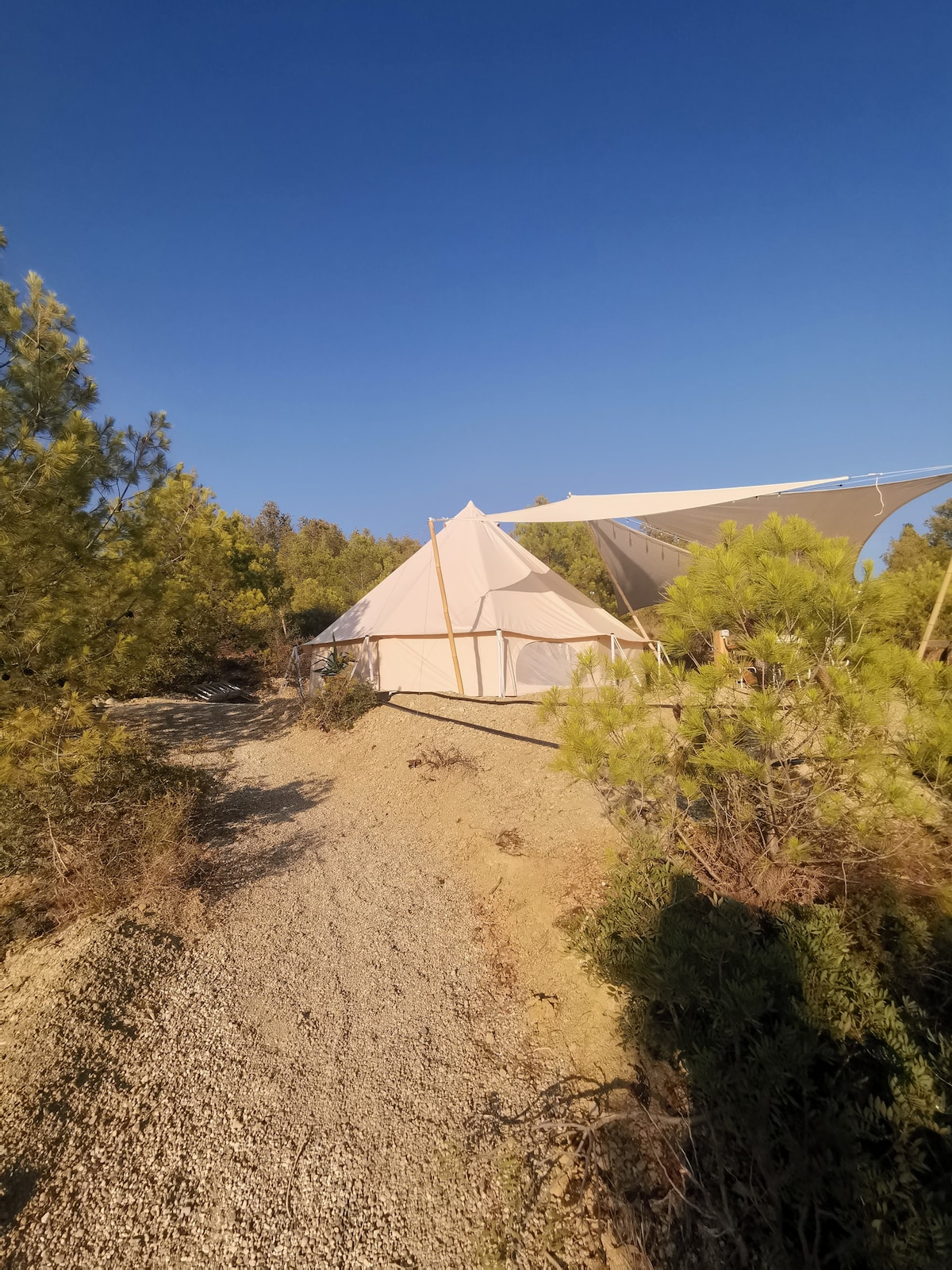 Carpa de glamping en nuestro jardín de naranjos en Cerdeña