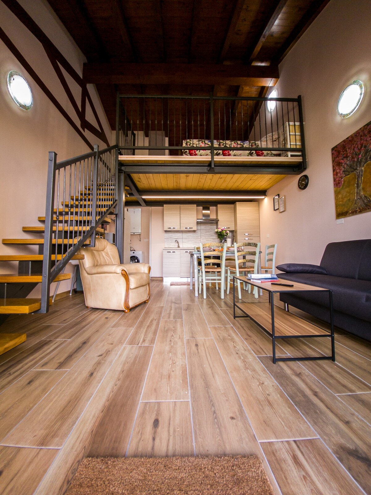 Ático moderno en zona peatonal en el centro histórico de Porto Ceresio. Consta de un espacio abierto con cocina moderna, mesa de comedor, sofá, cama de matrimonio y baño con ducha. La casa, de 1800, ha sido recientemente renovada y está equipada con todas las comodidades: lavadora, secadora, lavavajillas, cafetera, plancha y tabla de planchar, secador de pelo, wifi, TV de pantalla plana con canales digitales terrestres y Netflix.