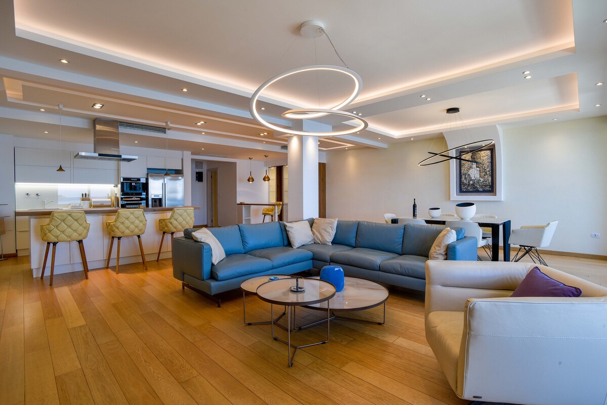 Lujoso apartamento de dos dormitorios junto al mar con increíbles vistas al mar. Este apartamento se encuentra en uno de los lugares más bonitos de Budva, Rafailovici. Lugar tranquilo, con restaurantes de pescado en la playa, un lugar que disfrutarás. El apartamento tiene dos dormitorios, dos baños, un gran salón con cocina y una gran terraza. La parte delantera del apartamento tiene grandes ventanales para que disfrutes de las vistas al mar desde todos los rincones del apartamento. Este apartamento también te ofrece privacidad y terraza con vistas románticas solo para ti. ¡Hola!