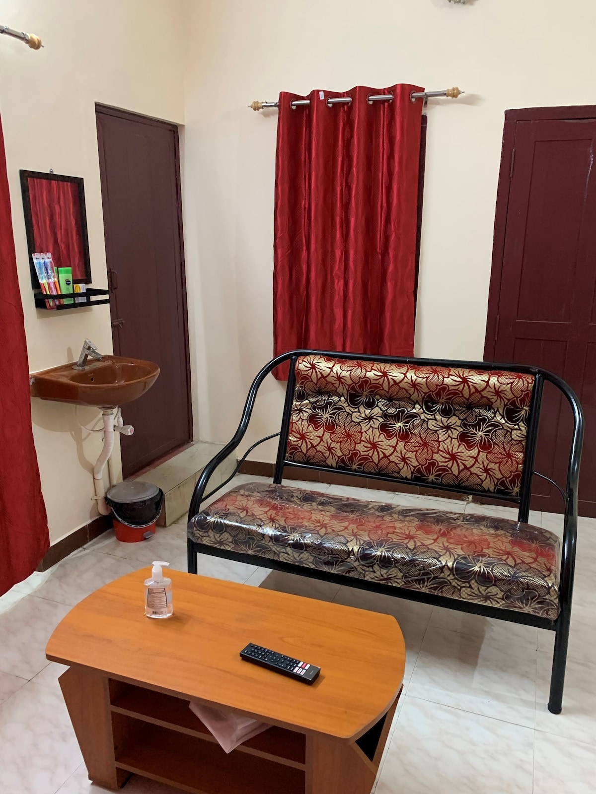 Este apartamento es totalmente privado, no se comparte ninguna zona y es apto para parejas. Este alojamiento es para 2 o 4 huéspedes. Necesitamos un comprobante de identificación de todos los huéspedes. El lugar tiene 1 dormitorio, un pasillo, cocina y un baño con algo de espacio al aire libre. La propiedad está en la planta baja y el departamento tiene cama tamaño king, aire acondicionado, TV Android con aplicaciones, horno, geiser, plancha, sofá cama con aire acondicionado en el pasillo, mesa de comedor, purificador de agua RO, heladera, cocina a gas, licuadora, olla a presión y todos los demás utensilios de cocina.