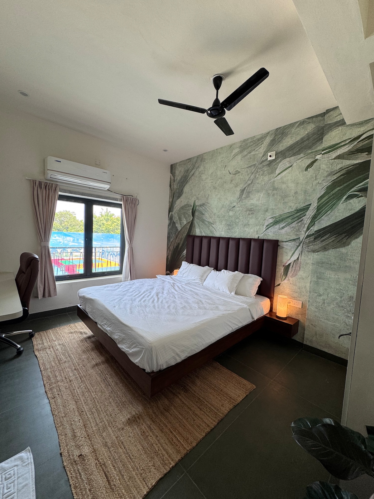 Experience serenity in this spacious 3BHK villa at Shubh Enclave, designed for families, founders, and creatives. Nestled beside lush greenery and a peaceful lake, ample sunlight and fresh air create a sanctuary for spaciousness, stillness and silence ✔ 3 king-size bedrooms w private attached washrooms ✔ Spacious living room with 55" Smart TV ✔ 2 airy balconies ✔ Fully equipped kitchen: microwave, stove, fridge, mixer utensils, Washing machine ✔ Daily cleaning available, cook on request