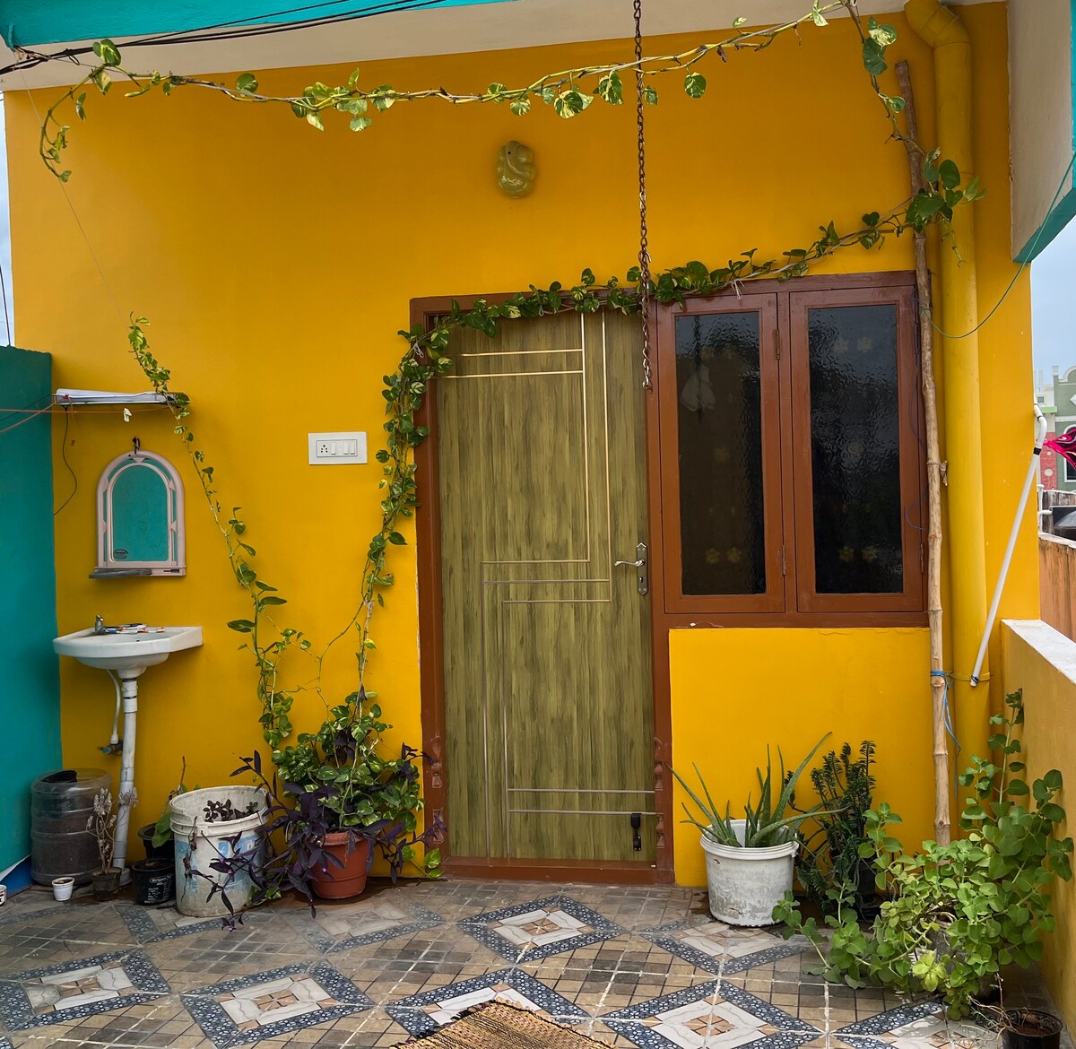 ¡Todo lo que necesitas en un apartamento de 2 dormitorios en el centro de Tiruvannamalai! Tiene todo lo necesario para una gran estancia en Tiru: aire acondicionado, wifi, camas cómodas, baño limpio con agua caliente, cocina con fogones y nevera. BALCÓN, planta alta, grandes ventanales con MOSQUITERA, excelente luz. Ubicación: - A 5 minutos a pie de Ramana Ashram. - A 5 minutos a pie de Girivalam Road. - A 3 minutos a pie de Siva Sakthi Ashram. - A 7 minutos a pie del supermercado Nilgiris. - A 20 minutos a pie del templo de Arunachaleswarar.