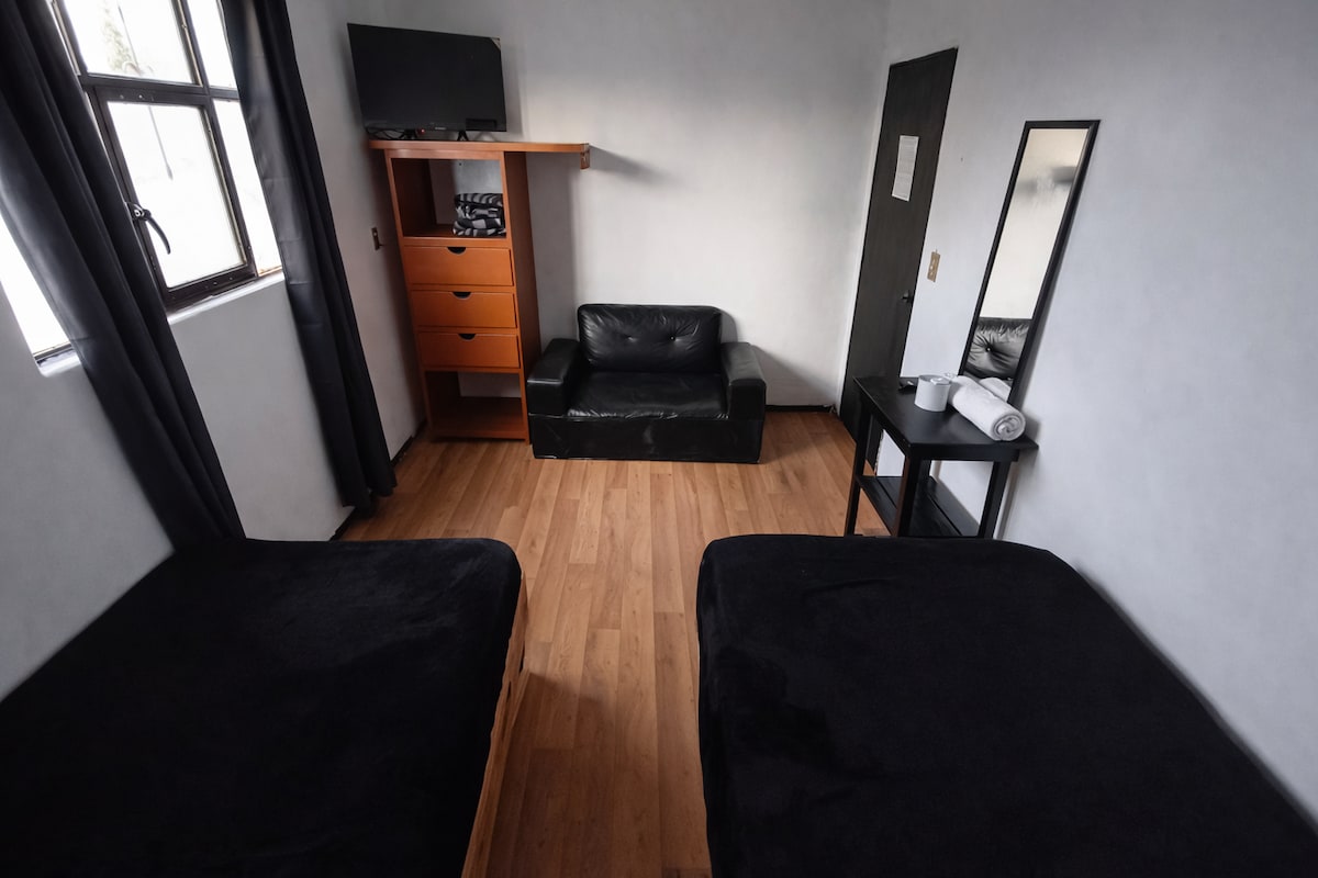 Habitación en primer planta con una cama matrimonial y baño privado. Nos encontramos a un costado del Hospital la Beneficencia Española 2 km de zócalo de Puebla 300 m de la Av Juárez 300 m del museo del Ferrocarril 100 m de Oxxo Hay estacionamientos y pensiones públicas a cuadra y media del alojamiento. Depende el número de personas es el precio. Cupo máximo 2 personas. Fácil acceso a transporte público y rutas a diferentes puntos de la ciudad de Puebla.